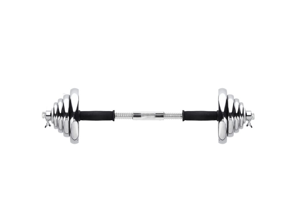 Činky jsou vyrobeny z vysoce kvalitní, chromované oceli, která je zárukou dlouhé životnosti. Kotouče se proti posunutí zajišťují šroubovacími zámky, které jsou dodatečně jištěny šroubem s křídlovou matkou.