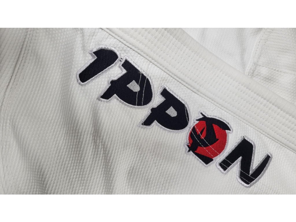 Výšivky & Styl - JIU JITSU nápis na rukávu jako symbol bojového umění. Logo s piktogramem Ipponshop a nápis Jiu Jitsu podél límce nášivka IPPON, který podtrhuje autenticitu tohoto kimona. Moderní a elegantní vzhled, který kombinuje tradici a inovaci. Toto kimono není jen kimono, ale vyjádření bojového ducha, vášně pro BJJ a síly Seishin – skutečné odhodlání stát se lepším s každým tréninkem.