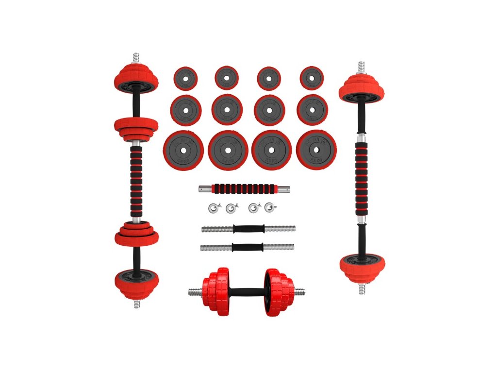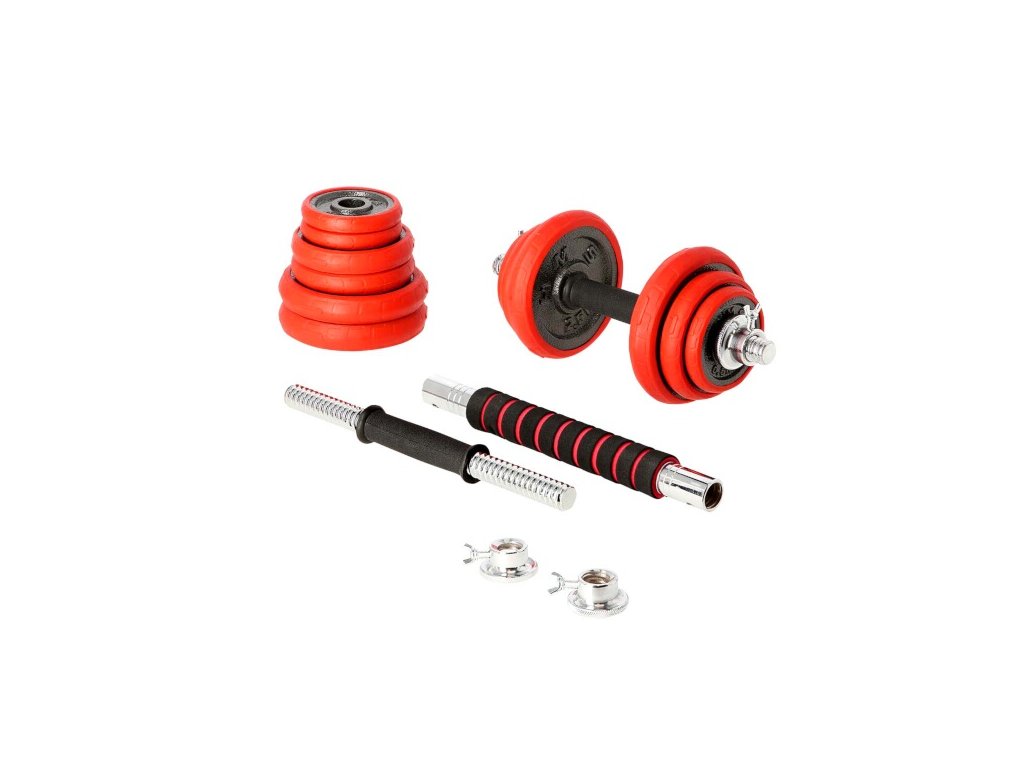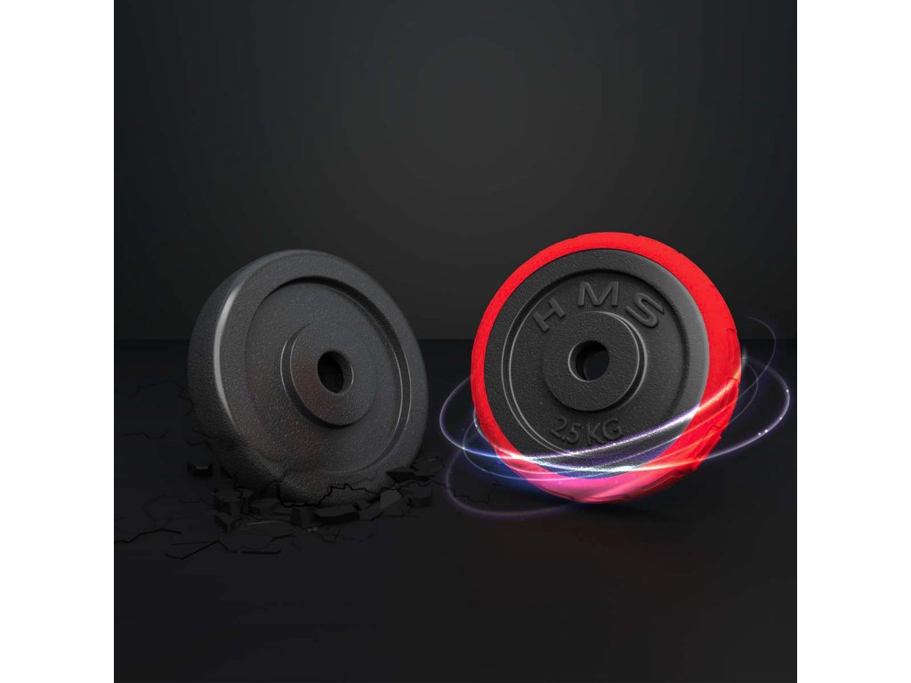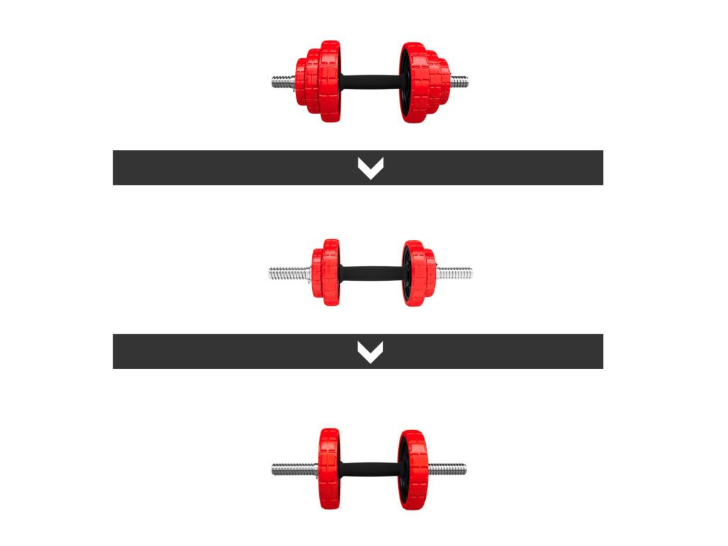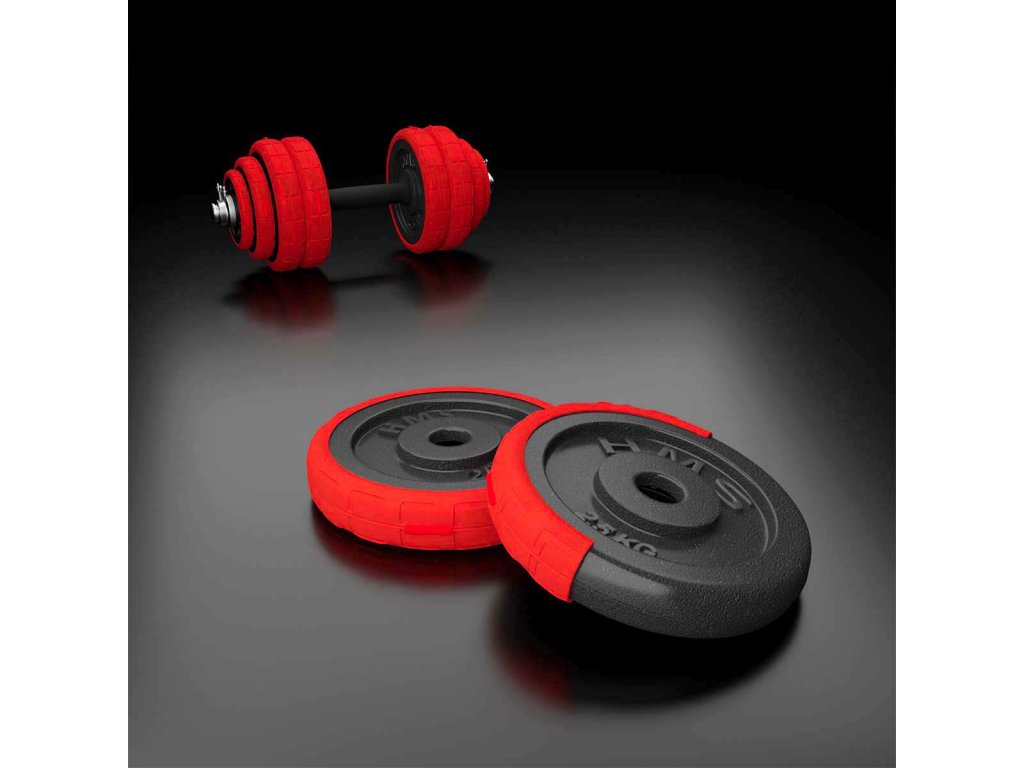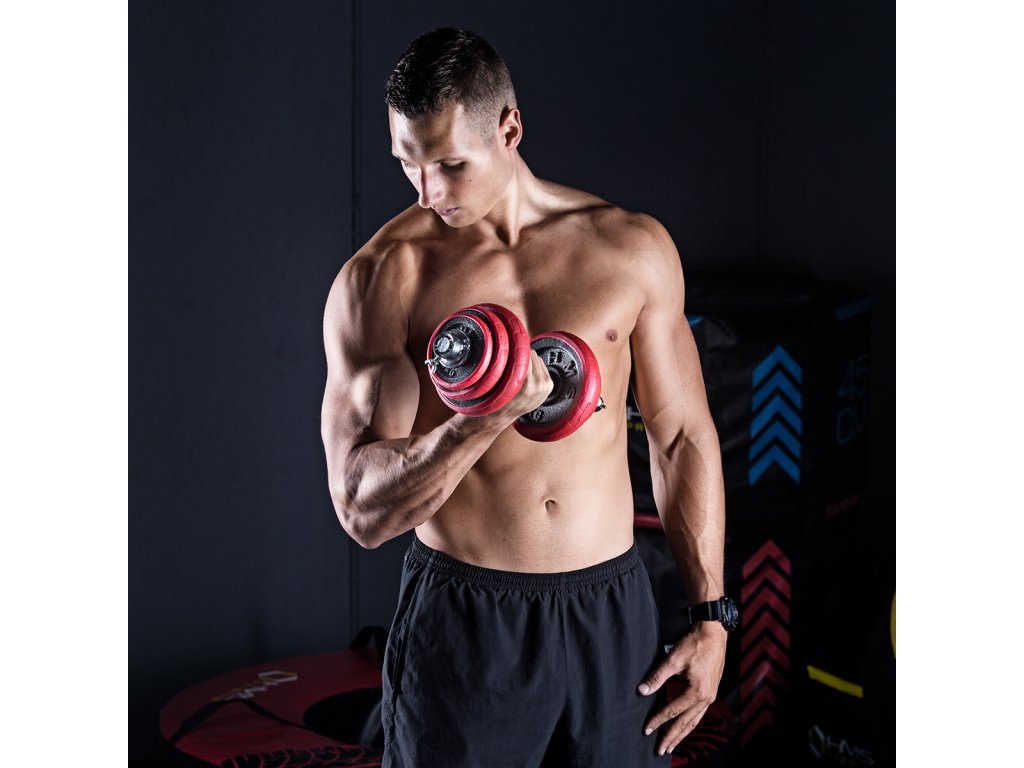 Činky jsou vyrobeny z vysoce kvalitní, lité oceli, která je zárukou dlouhé životnosti. Kotouče jsou opatřeny gumovým návlekem, který chrání jak činky, pak podlahu před poškozením při neopatrném odložení. Proti posunutí závaží se činky zajišťují šroubovacími zámky, které jsou dodatečně jištěny šroubem.