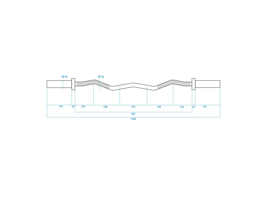 Průměr úchopové části je 28 mm a zajišťuje vysokou odolnost a pohodlí během tréninku. Použitý proces chromování hřídele je zárukou zachování jejího vzhledu po dlouhou dobu jejího používání a také je nejlepší ochranou proti korozi.