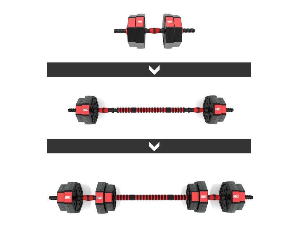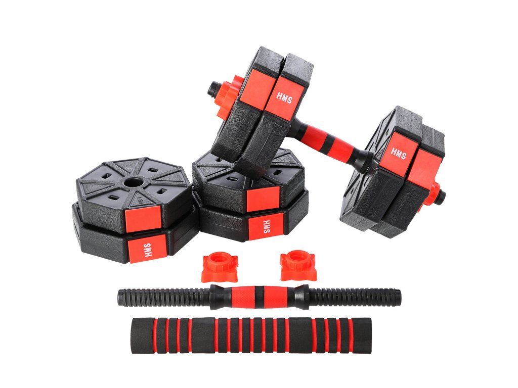 Kompletní nakládací sada dvou jednoručních a jedné obouruční činky o celkové hmotnosti 15 kilogramů, to je HMS SGC15. Nakládací činky patří ke klasickému vybavení každé domácí posilovny.