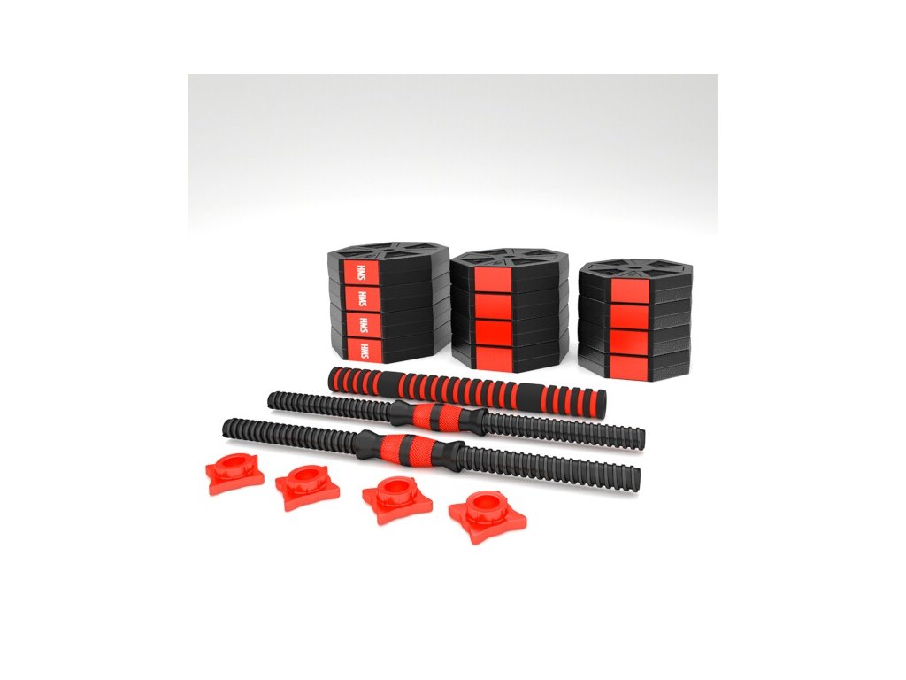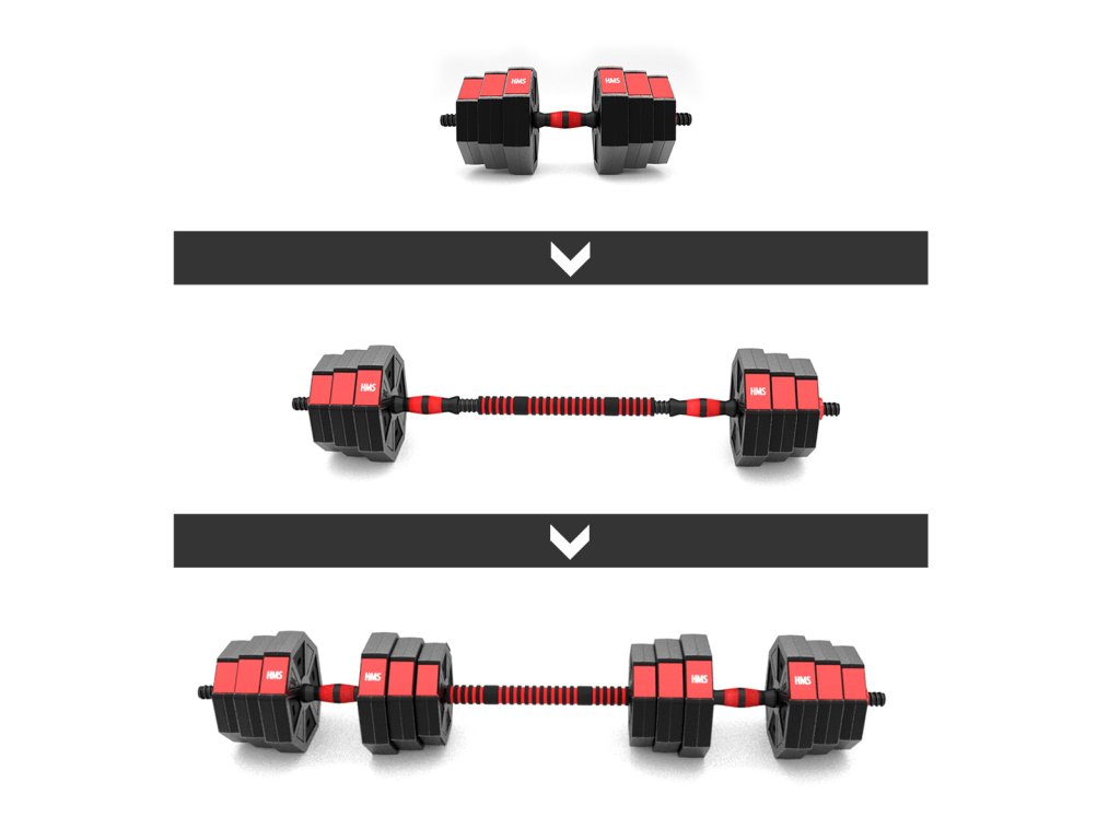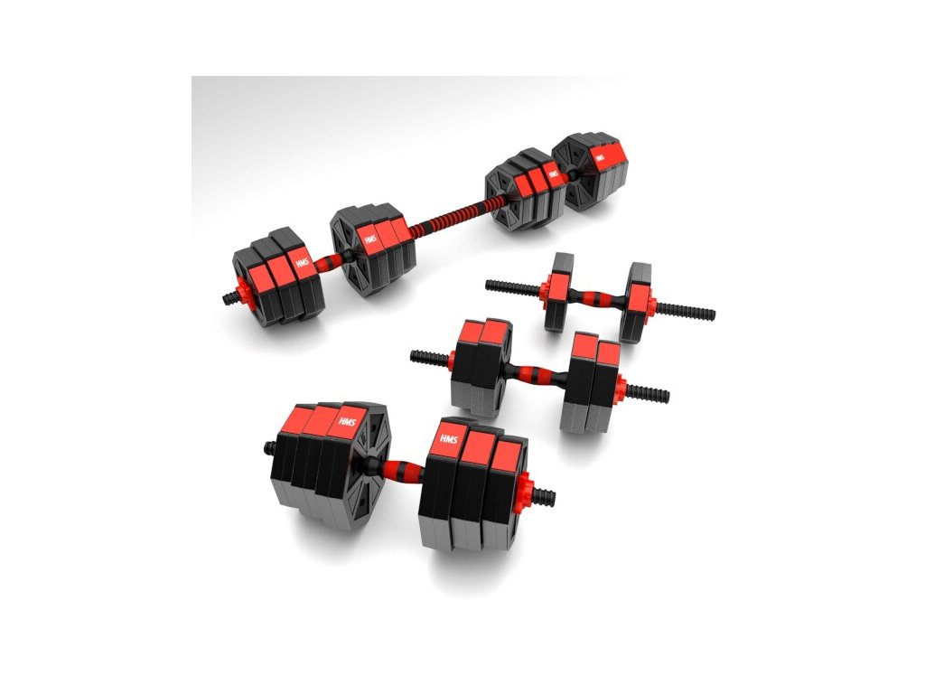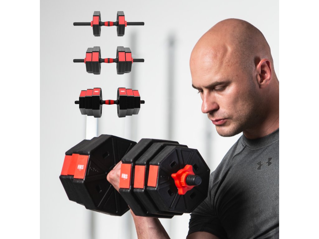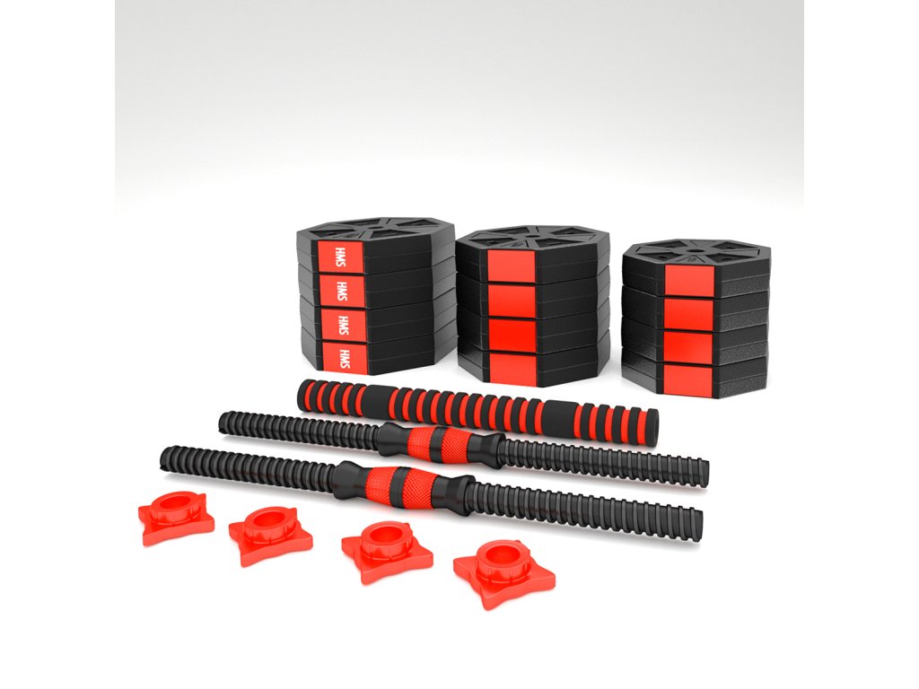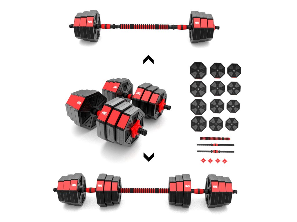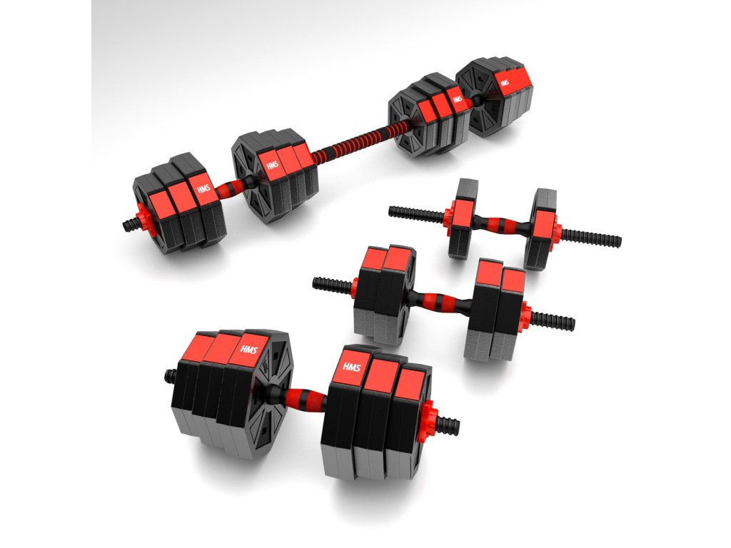Kompletní nakládací sada dvou jednoručních a jedné obouruční činky o celkové hmotnosti 20 kilogramů, to je HMS SGC20. Nakládací činky patří ke klasickému vybavení každé domácí posilovny.
