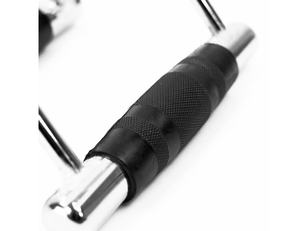 Obouruční madlo s gumou HMS UW04 vhodné k cvikům na záda, přesněji přítahům spodní kladky, nebo k přítahům osy v multiosém kloubu - Landmine, kdy do něj činka dokonale zapadne.