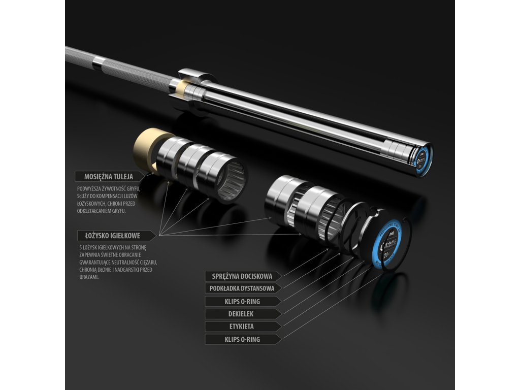 Průměr úchopové části je 30 mm a zajišťuje vysokou odolnost a pohodlí během tréninku. Použitý proces chromování hřídele je zárukou zachování jejího vzhledu po dlouhou dobu jejího používání a také je nejlepší ochranou proti korozi.