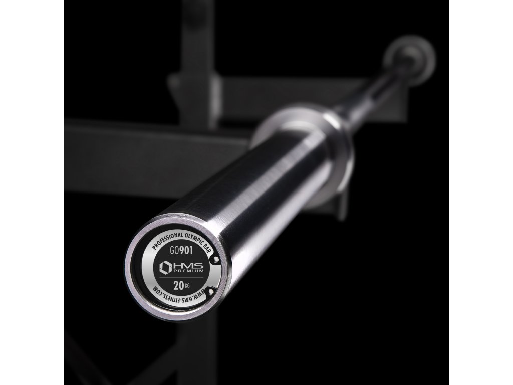 Olympijská osa HMS Premium GO901 je vyrobena ze speciální chromované oceli, která prošla procesem kalení. Osa GO901 se vyznačuje pevností v kombinaci s dokonalou pružností. Součástí soupravy jsou dva plastové uzávěry ZG1000. Pevné a pohodlné uchopení hřídele je zajištěno vroubkováním na povrchu. Maximální zatížení je 900 kg. Průměr úchopové části je 28 mm a zajišťuje vysokou odolnost a pohodlí během tréninku. Použitý proces chromování hřídele je zárukou zachování jejího vzhledu po dlouhou dobu jejího používání a také je nejlepší ochranou proti korozi. Olympijská hřídel HMS Premium GO901 má 8 jehličkových ložisek (4 na každé straně), které umožňují hladké a plynulé otáčení rukávů na hřídeli. Její konstrukce snižuje napětí na koncích válečků, což má za následek vyšší životnost ložisek. Navzdory svého malého průřezu mají jehličková ložiska vysokou tuhost a nosnost. Dva plastové uzávěry nacházející se v balení zaručují stabilní rozložení zátěže na hřídeli během tréninku. Uzávěry mají ve vnitřní části gumové elementy bránící tomu, aby se závaží povolilo.