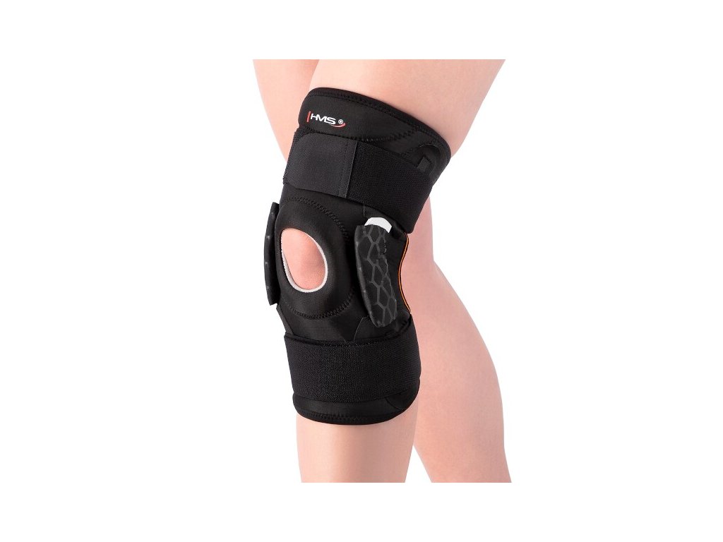 Ortéza HMS KO1655 je vyrobena z kombinace neoprenu, polyesteru a nylonu v úpravě airprene. Výsledný materiál je elastický, roztažitelný do všech směrů a pomocí systému suchých zipů je možné stabilizátor nastavit přesně podle Vašich potřeb. Na stranách se nachází ocelové výztuhy, které zamezují pohybu kolene do stran a vzad. V přední části je kapsa na zip, ve které se nachází silikonový kroužek pro stabilizaci čéšky. Kroužek lze snadno vyjmout a záleží pouze na Vás, jak hodně potřebujete koleno stabilizovat.