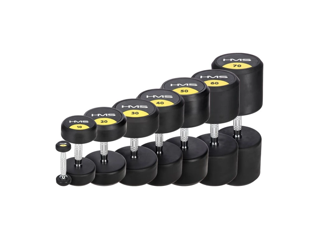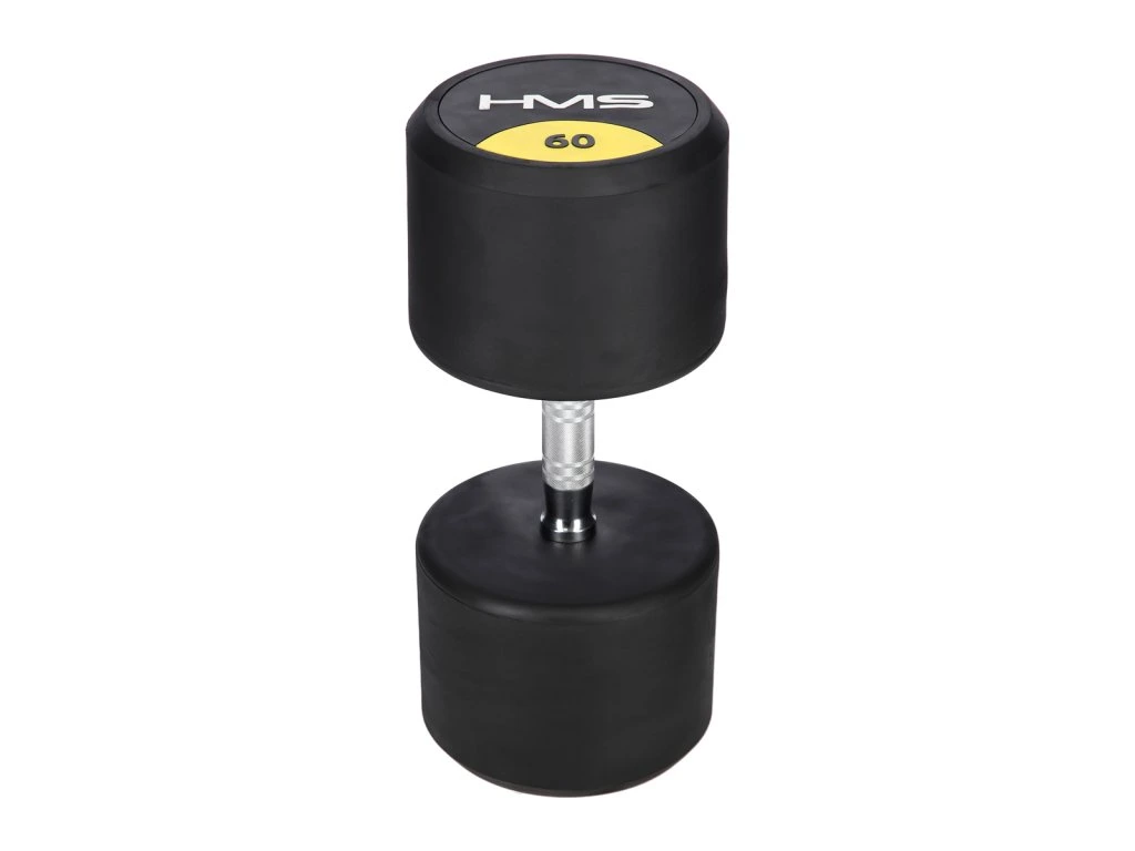 60-ti kilogramová jednoruční činka HMS HG Pro je určená pro profesionální použití jak doma tak v posilovně. Závaží tvoří litinový odlitek pokrytý silnou vrstvou gumy, která ochrání jak činku, tak podklad před poškozením. Na čelní straně je značka HMS a údaj o hmotnosti v kilogramech. Rukojeť je vyrobena z chromované oceli, pro pohodlný úchop má soudkovitý tvar s vroubkovaným povrchem.