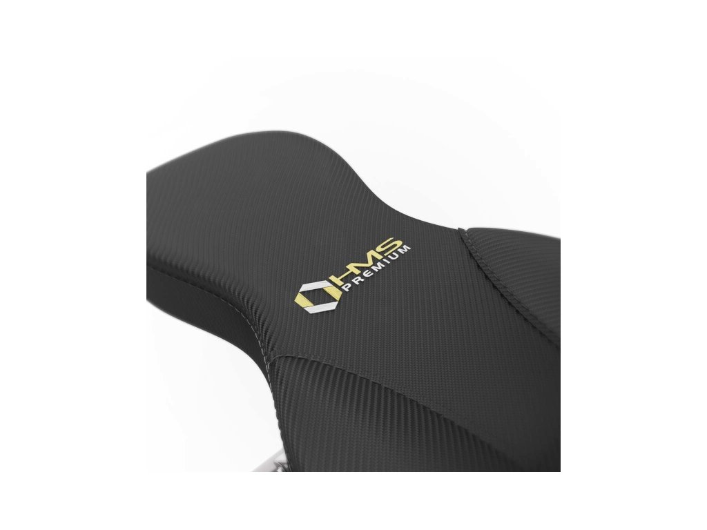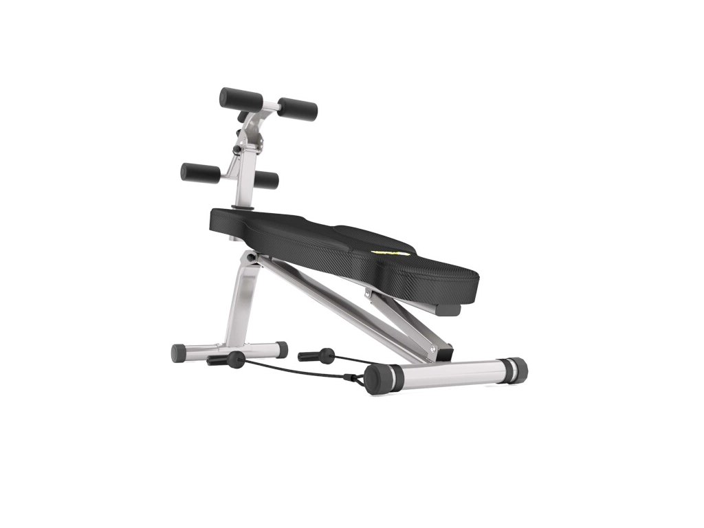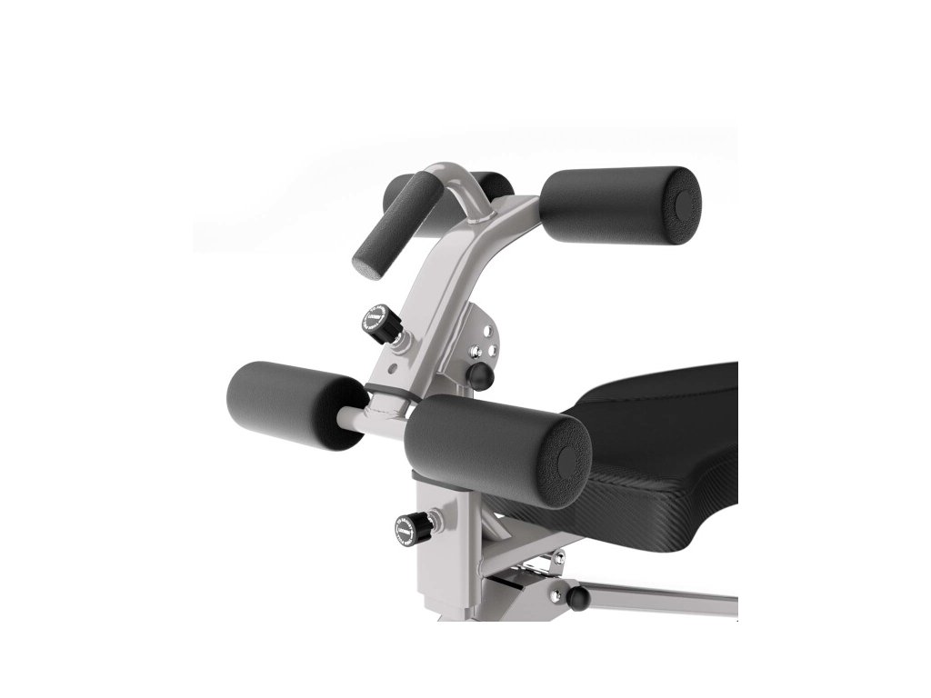 Zádová opěra je vyvedena z hrubé desky opatřené vysokou vrstvou pěny pro maximální pohodlí během tréninku. Ergonomické polstrování je vyrobeno z umělé kůže s karbonovým vzhledem, je odolné vůči potu a také zamezuje "klouzání" během tréninku.