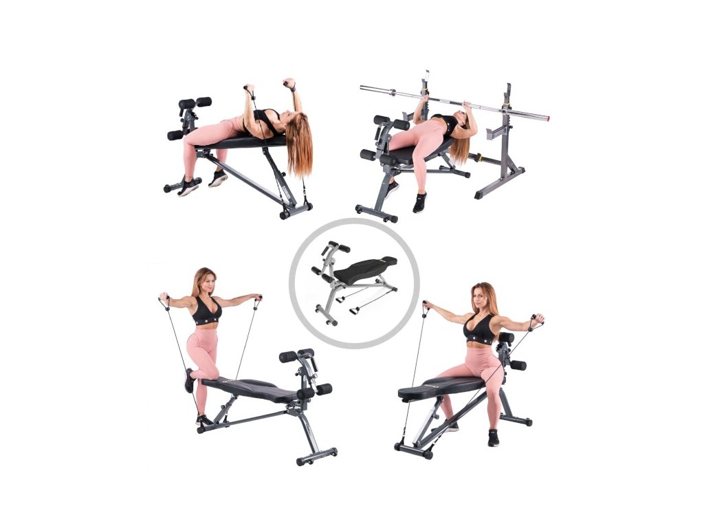 K lavici jsou dodávány 2 expandéry, které skvěle poslouží pro základní trénink. Pro snadné přemísťování lavice je jeden stabilizátor opatřen transportními kolečky.