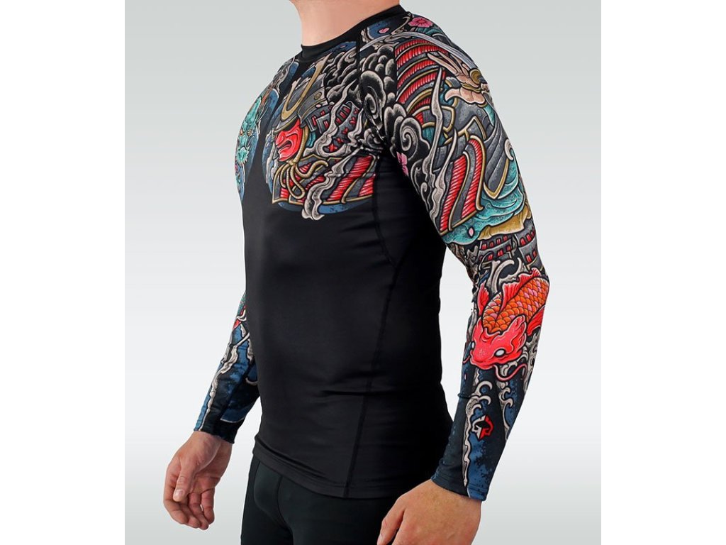 Pánský rashguard s dlouhým rukávem ideální pro trénink bojových sportů. Je vyroben z odolné tkaniny, která se nežmolkuje a je odolná proti oděru. Grafika byla nanesena sublimací, takže potisk je prakticky nesmazatelný a barvy dokonale zobrazené. Svůj skvělý vzhled si zachová i po letech náročného tréninku. Rashguard je vhodný také jako termo vrstva, např. v zimě.