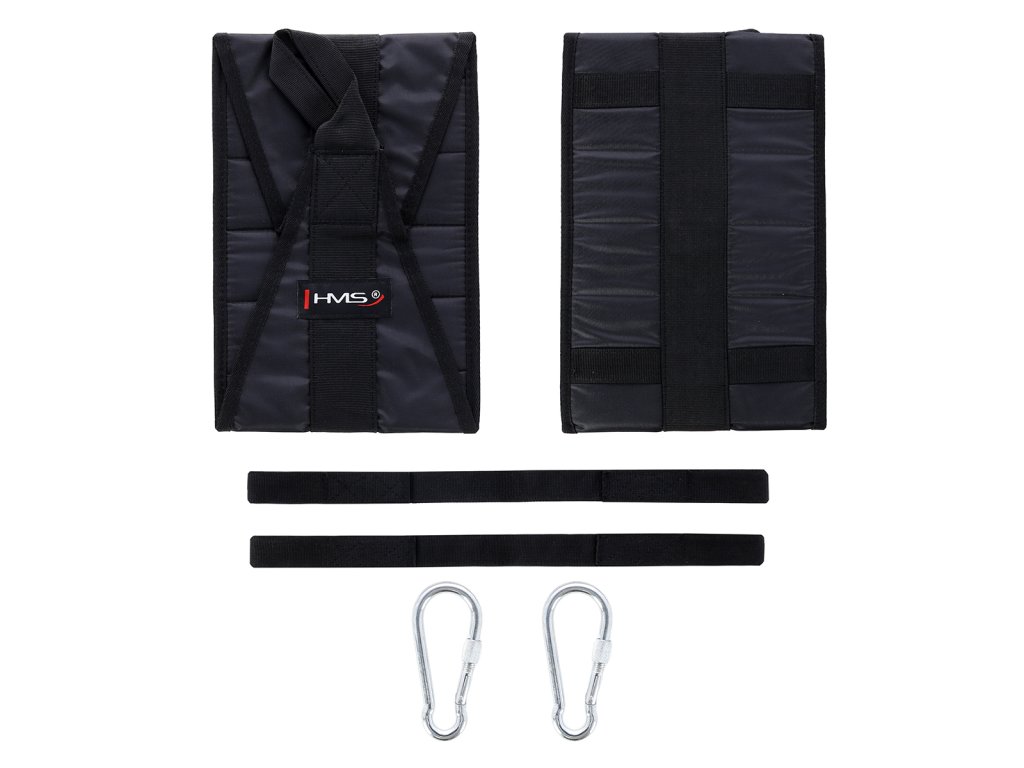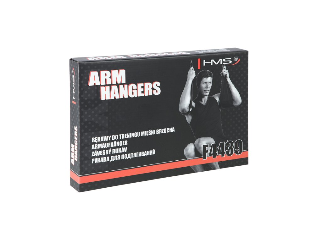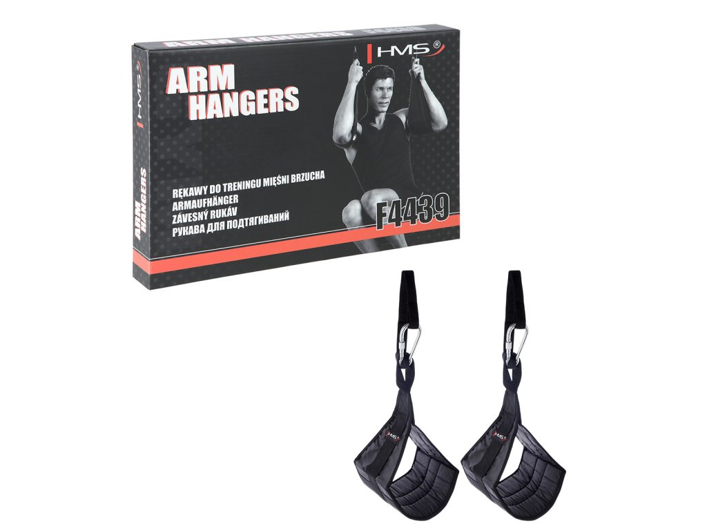 Arm Hanger HMS F4439 jsou závěsné rukávy, kteréí usnadňují trénink břišních svalů. Dodané dva rukávy pomocí karabiny zavěsíte na libovolnou tyč, poté jen provlečete paže rukávy a zahájíte trénink. Použité, kvalitní materiály jsou zárukou dlouhé životnosti. Nosnost 2 rukávů je až 100 kilogramů.