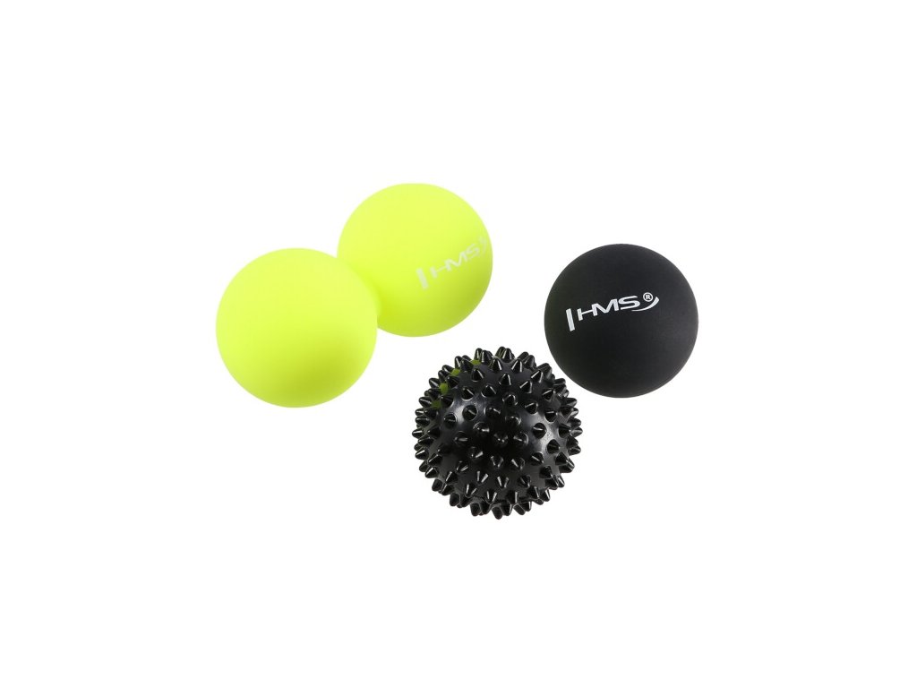 Sada masážních míčků HMS BLS01 je dokonalým doplňkem k větším, masážním přístrojům. Míček HMS BLC01 o průměru 6 cm je ideální k masáži spoušťových bodů a míst s napjatými fasciemi. Dvojitý míček HMS BLC02 je ideální pro ošetření hlubokých svalových skupin nebo těžko přístupných oblastí těla, jako je krk, hýždě, ramena a hrudník. Pomocí míčku HMS BLP01 s hroty lze bodově ošetřit potenciální zdroje bolesti.