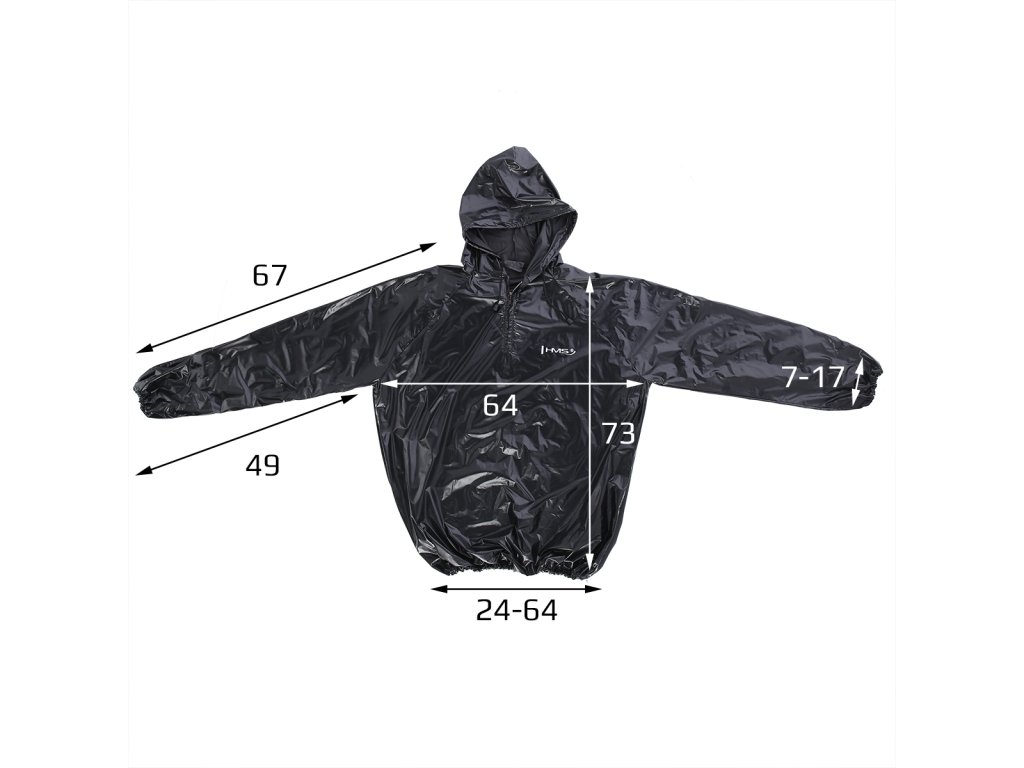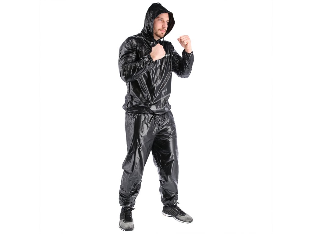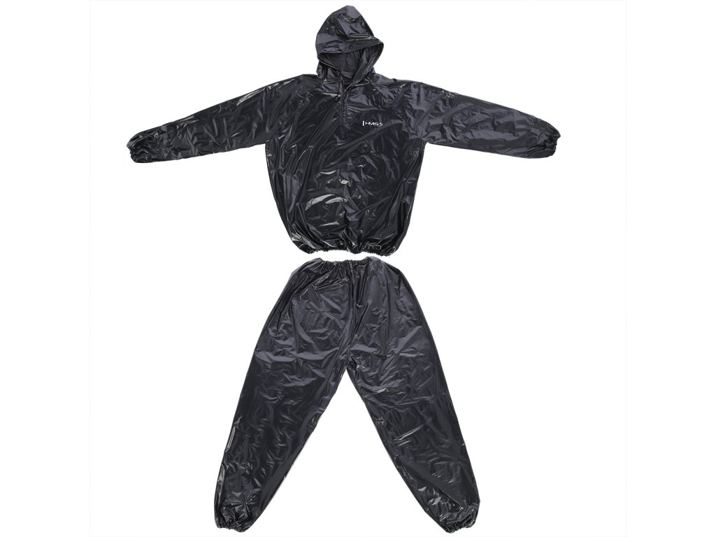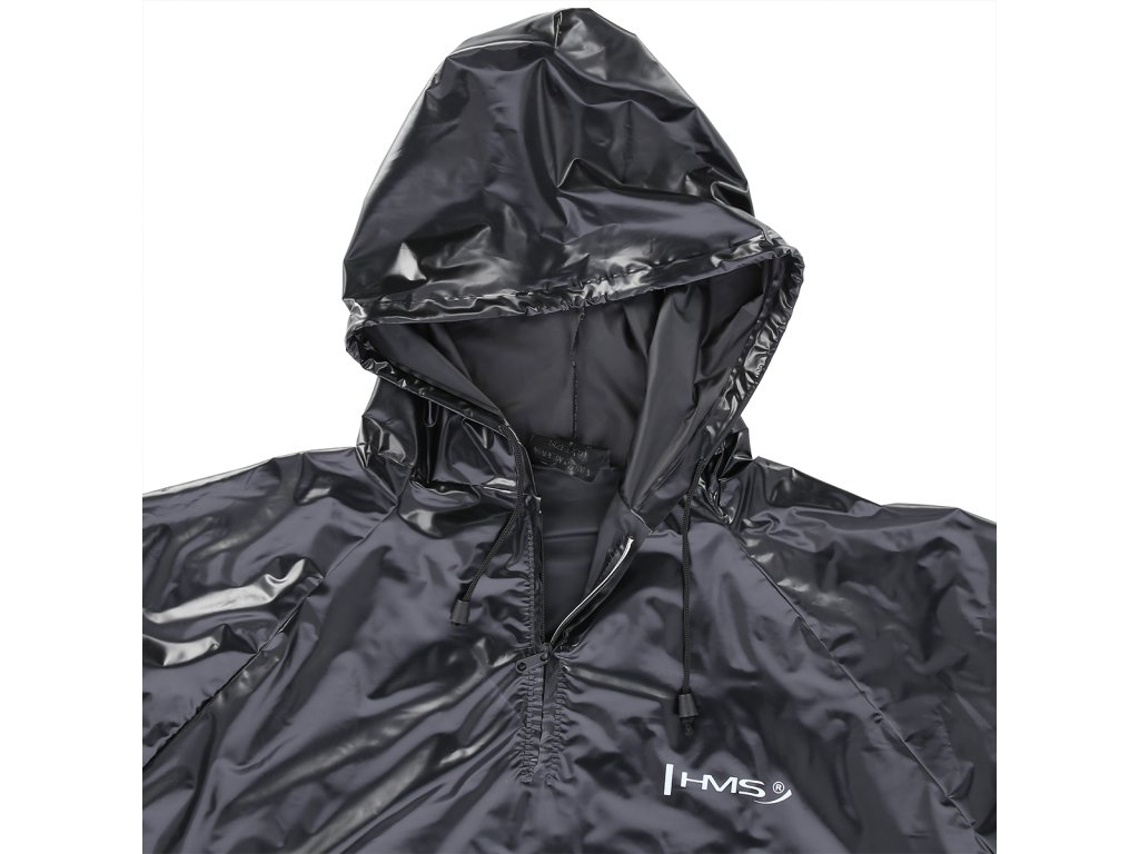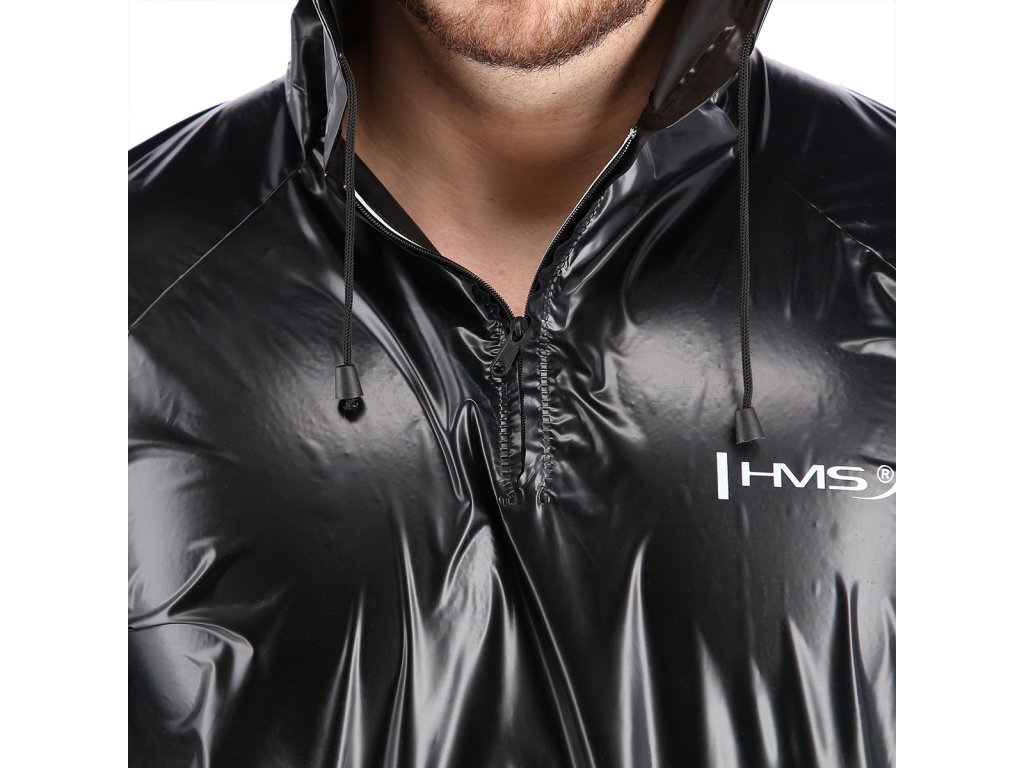 Sauna oblek HMS DSS12 je nepropustný komplet kalhot a trika s dlouhým rukávem a kapucí. Sauna dress je ideálním nástrojem pro sportovce, kteří potřebují rychle snížit tělesnou hmotnost o 2 - 3 kilogramy. Trénink v obleku způsobuje, že rychle stoupá povrchová teplota těla, spalujeme větší množství energie, více se potíme a z organismu odvádíme větší množství vody, než v klasickém oblečení.