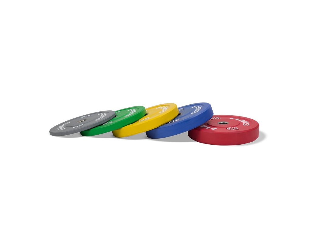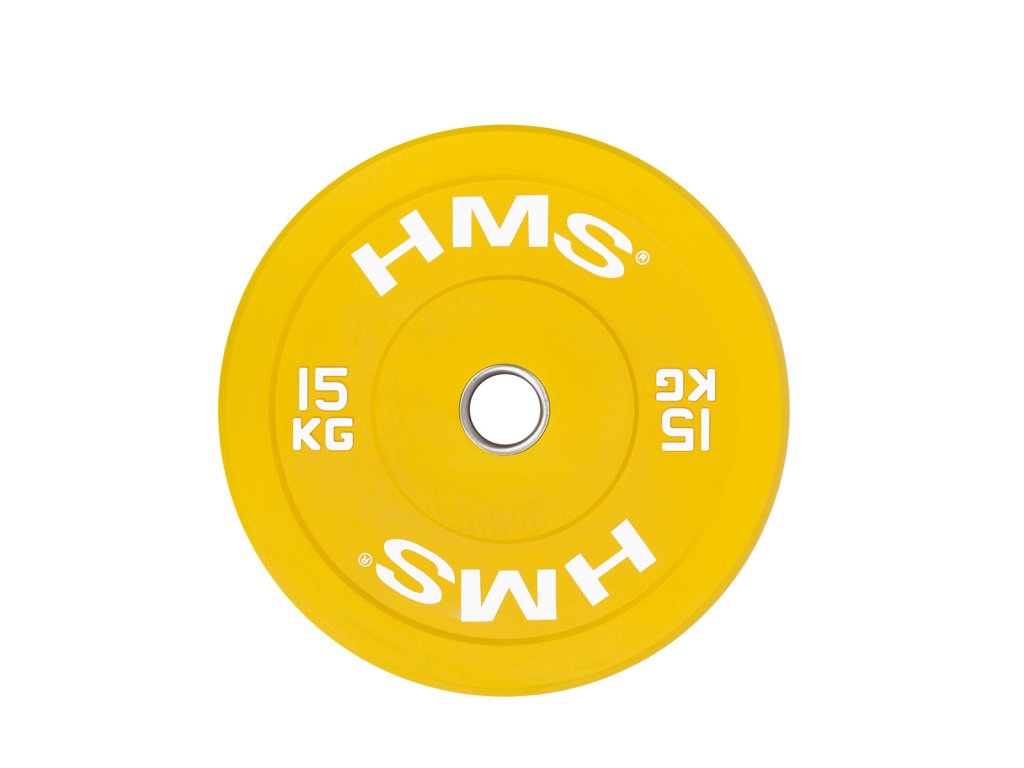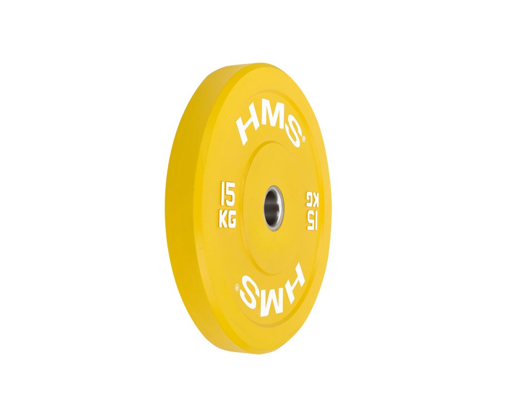 Farebný bumper kotúč HMS vhodný na vzpieračský a funkčný tréning. Jeho hlavným parametrom je odolnosť, kedy aj po odhode z veľkej výšky, zostane kotúč aj podložie bez známky poškodenia. Kotúč je určený pre olympijské osi s priemerom tŕňov 50 mm a je sfarbený podľa závodných parametrov.