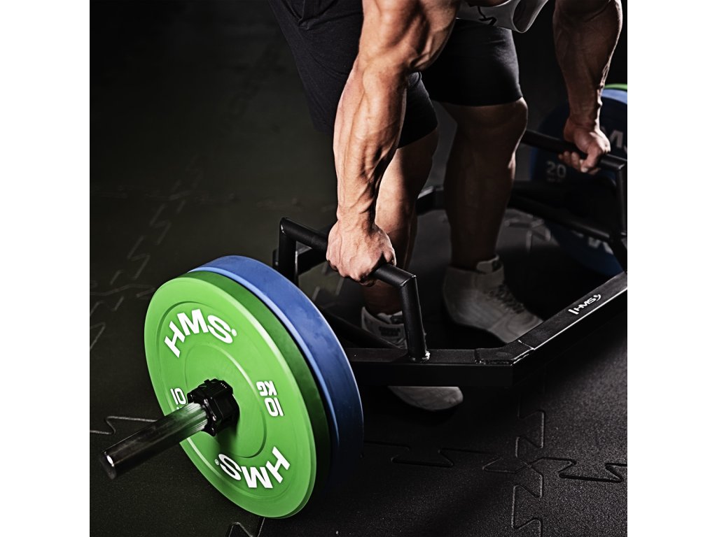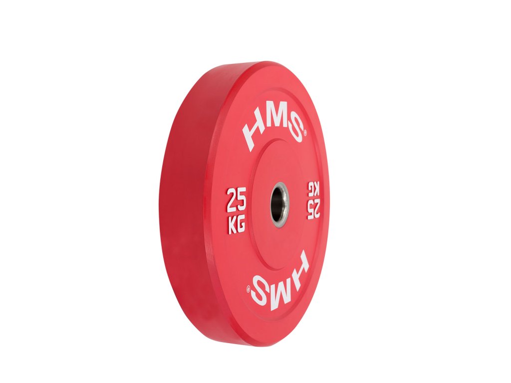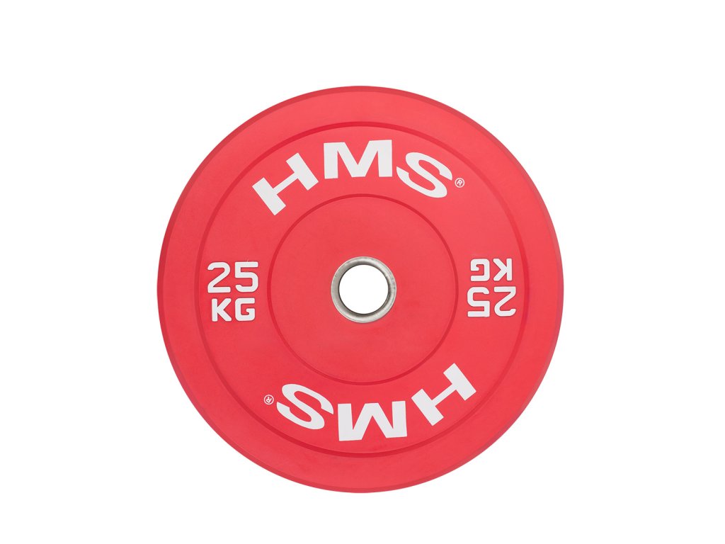 Farebný bumper kotúč HMS vhodný na vzpieračský a funkčný tréning. Jeho hlavným parametrom je odolnosť, kedy aj po odhode z veľkej výšky, zostane kotúč aj podložie bez známky poškodenia. Kotúč je určený pre olympijské osi s priemerom tŕňov 50 mm a je sfarbený podľa závodných parametrov.