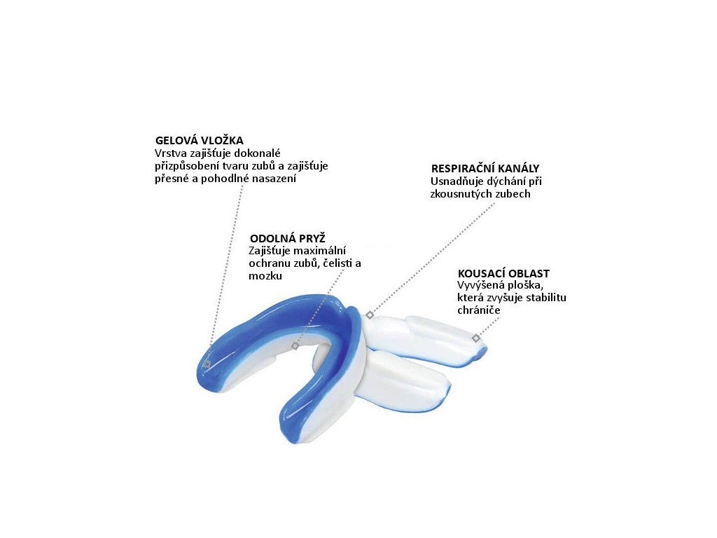 3) chránič sa priloží na vrchné zuby a zahryzne sa