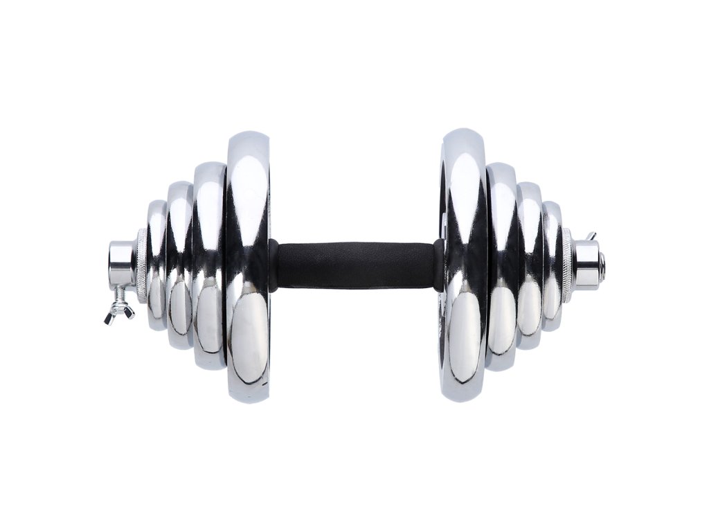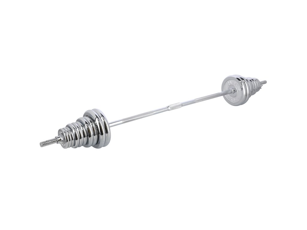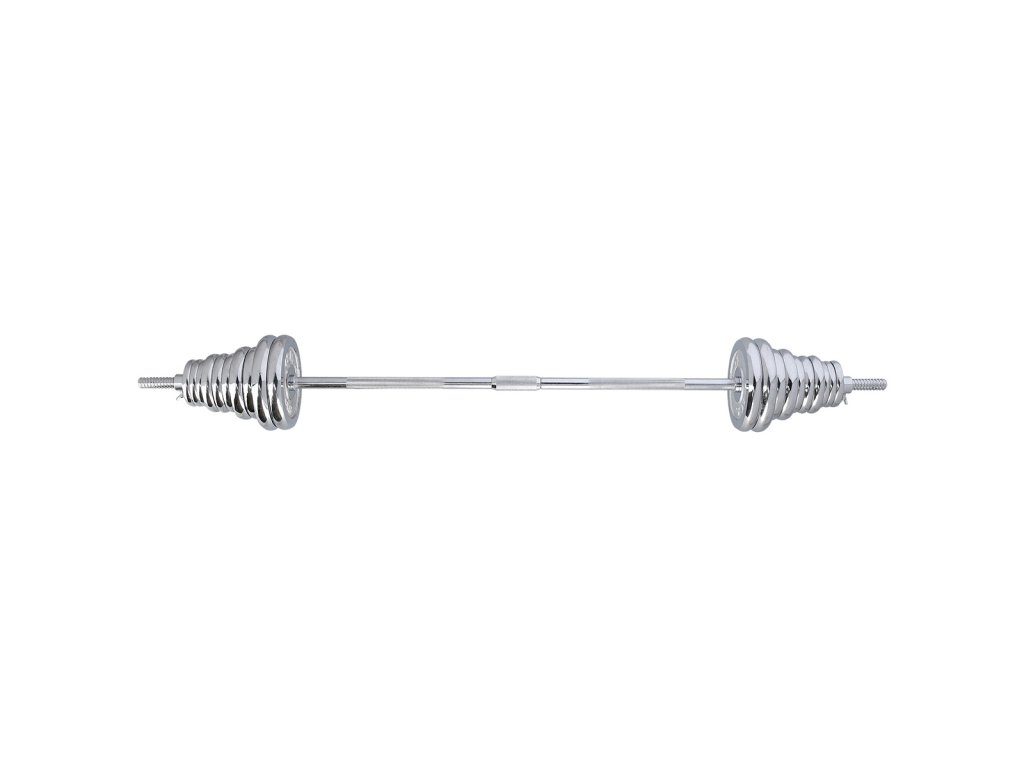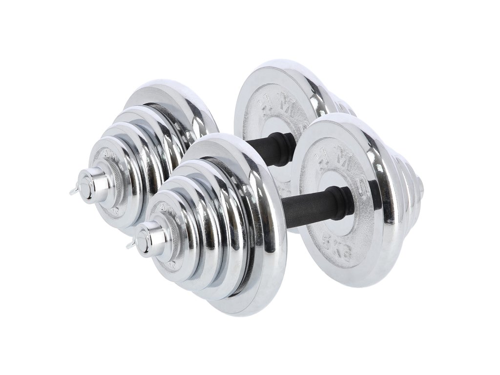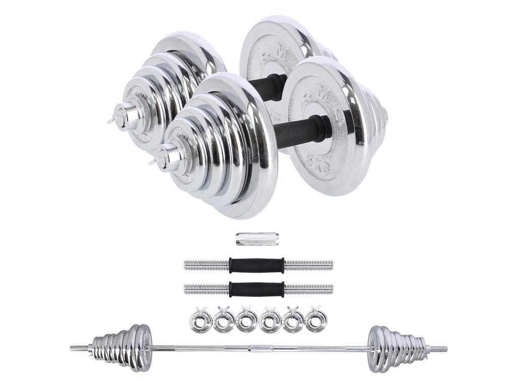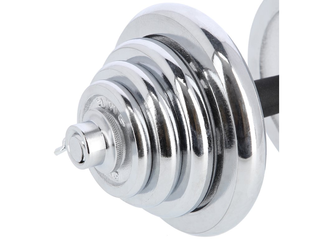Činky sú vyrobené z vysoko kvalitnej, chrómovanej ocele, ktorá je zárukou dlhej životnosti. Kotúče sa proti posunutiu zaisťujú skrutkovacími zámkami, ktoré sú dodatočne istené skrutkou s krídlovou matkou.