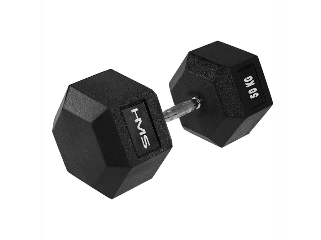 50 kilogramová jednoručná, šesťhranná činka určená na profesionálne použitie ako doma tak v posilňovni. Šesťhranný tvar zamedzuje nechcenému pohybu činky pri jej odložení a pogumovaní predlžuje jej životnosť. Chrómovaný úchop je opatrený radlovaním pre istejšie držanie.