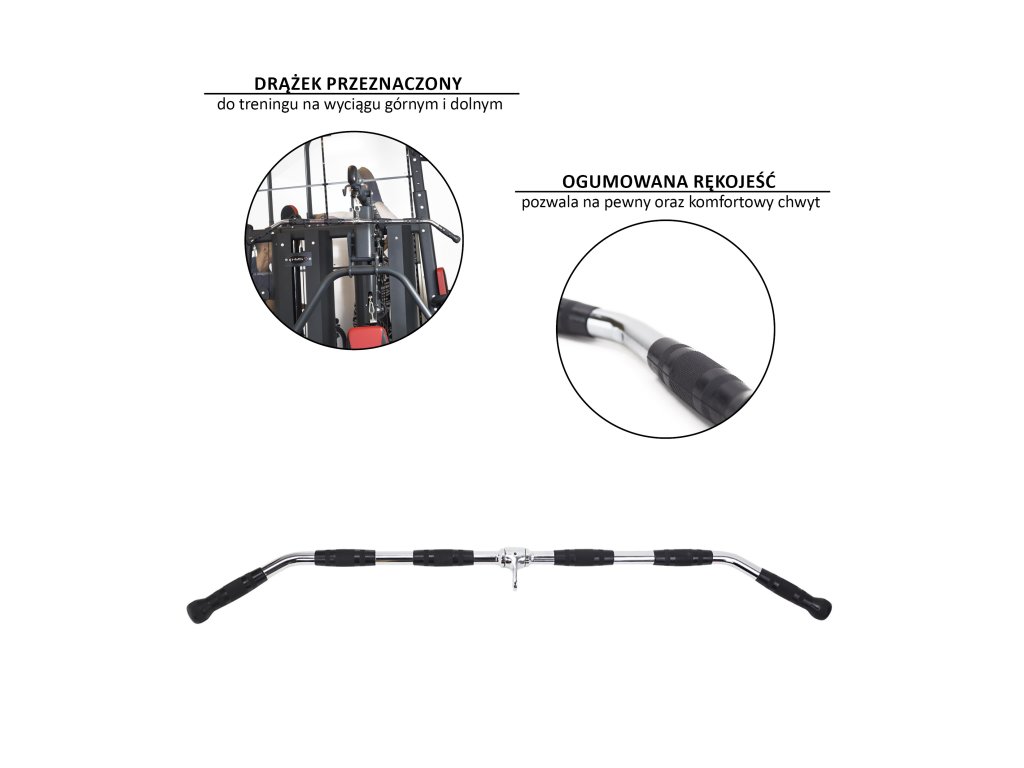 Horná kladka lat bar UW14 na komplexné precvičenie svalstva hornej polovice tela. Tento adaptér má 6 sád protišmykových rukovätí.
