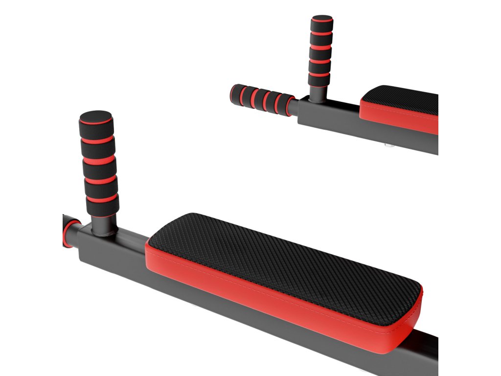 Pokiaľ teda do hákov zavesíme os hrazdy, potom budú v pracovnej polohe bradlá, na ktorých môžeme trénovať príťahy nôh k bruchu, predkopávaniu, dipy a podobne. Bradlá majú pohodlnú chrbtovú opierku a 2 opierky na lakte.