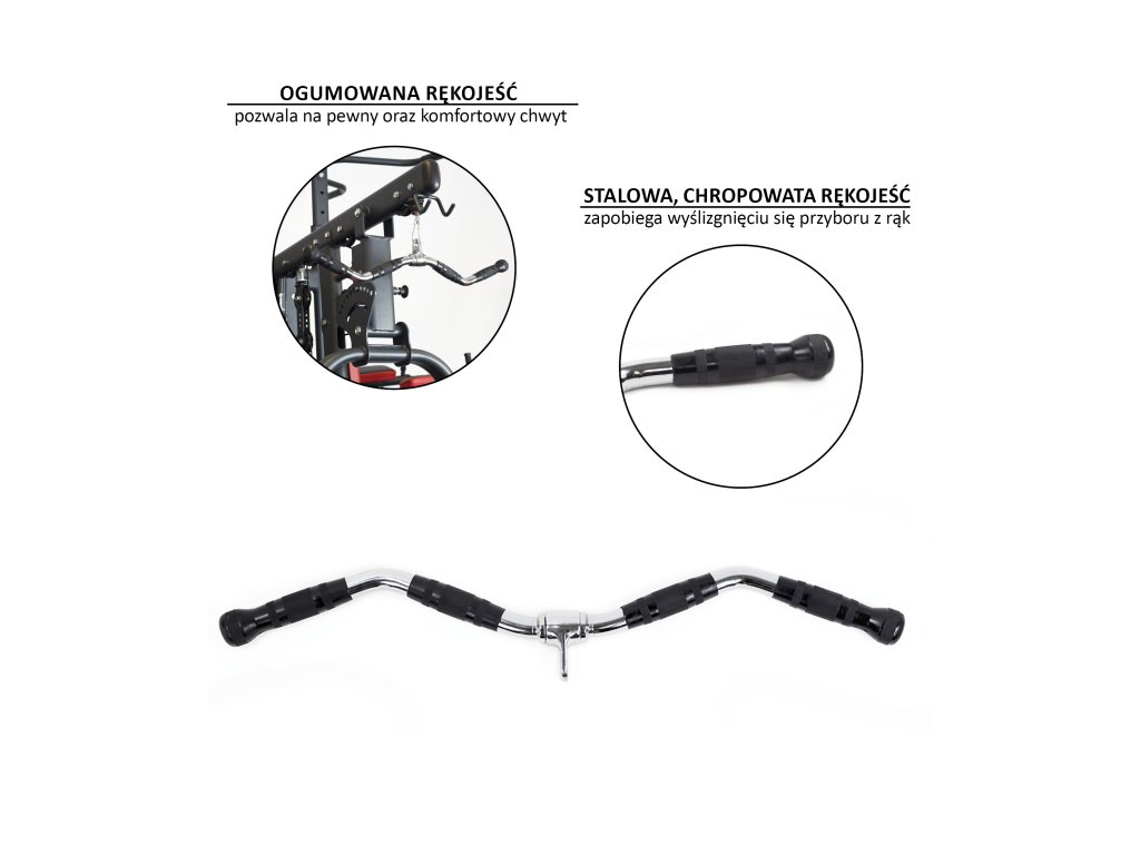 Lomená horná kladka pro-grip UW13 na komplexné precvičenie ramenieho svalstva. Tento adaptér má 2 sady protišmykových rukovätí.