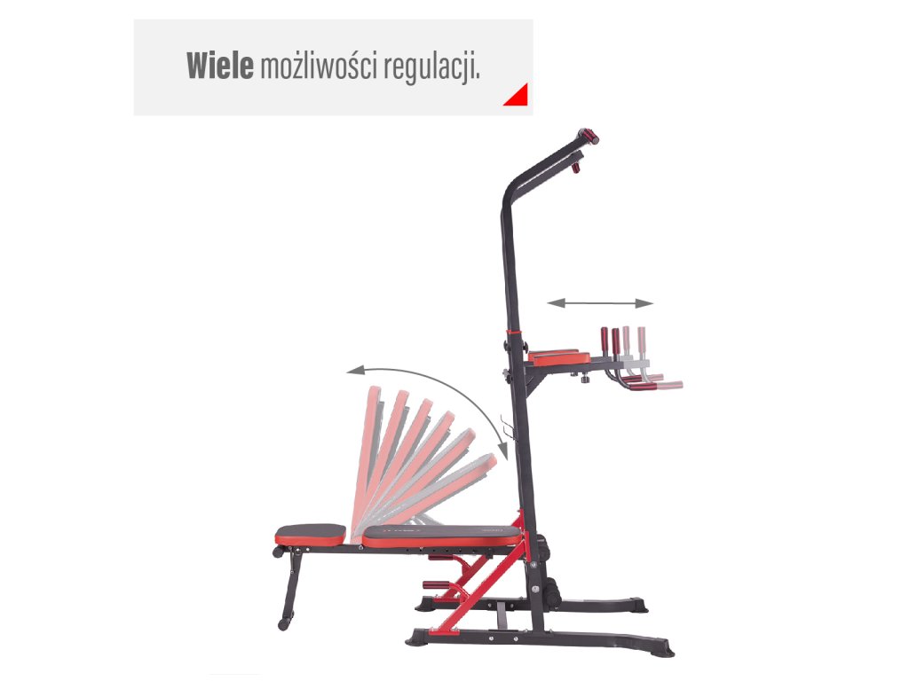 Príťahy na hrazde a kľučky na bradlách alebo "dipy" sú dva cviky, ktoré veľmi silne rozvíjajú dve skupiny agonistických a antagonistických svalov, teda najširšie chrbtové svaly, bicepsy, prsné svaly a tricepsy. Spodné podpery umožňujú robenie hlbokých klikov. Vďaka tomu svaly pri každom pohybe oveľa viac pretiahneme, čo vedie k ich rýchlejšiemu rastu. S PWL8324 je tiež možné trénovať brušné svaly vďaka lavici v šikmej polohe a podrúčkam umiestneným na bradlách. Lavičku je možné nastaviť aj do vodorovnej polohy, čo umožňuje vykonávať cviky s činkami. Integrovaný držiak na veľkú činku umožňuje trénovať Bench Press. Všetky komponenty robia z tohto výrobku HMS skutočne multifunkčné zariadenia.