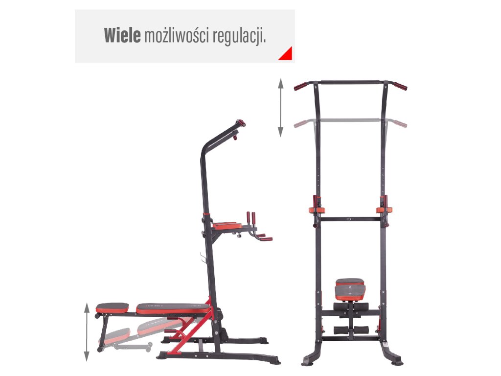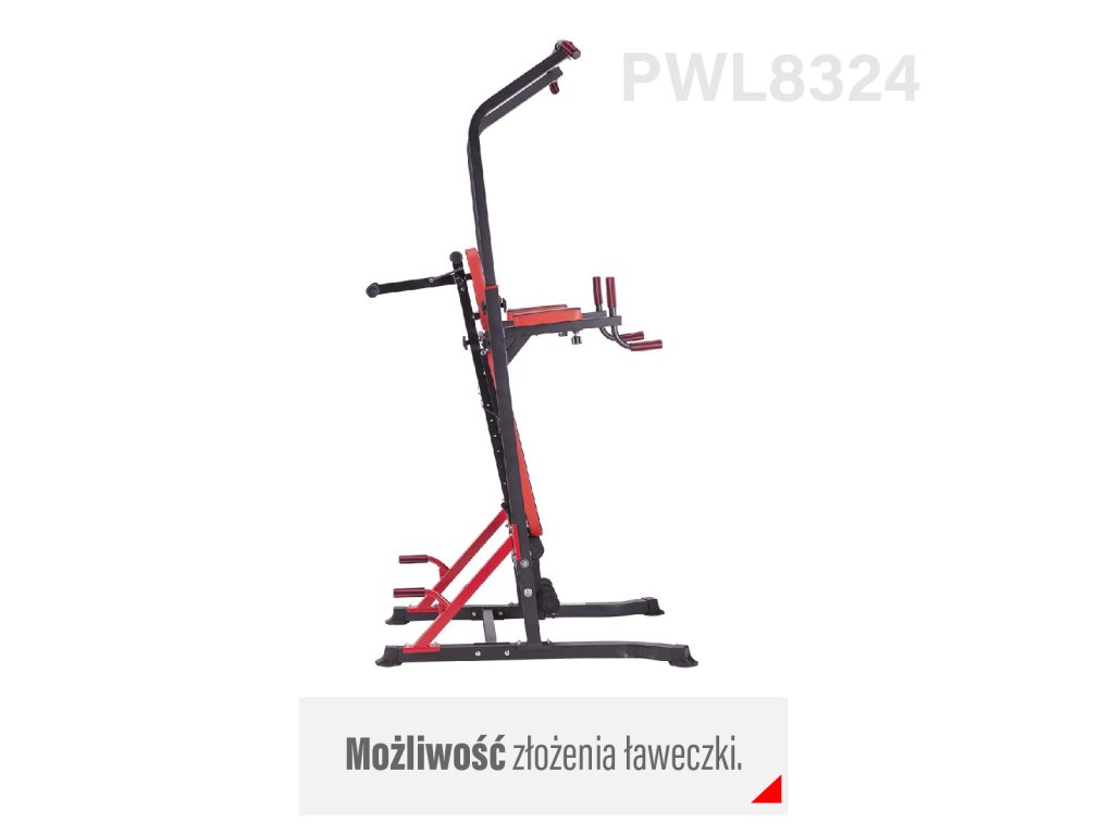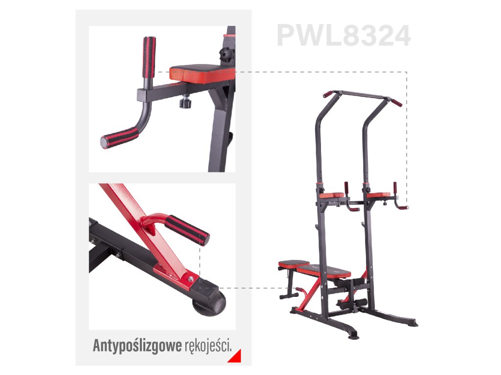 PWL8324 je vyrobená z najkvalitnejších materiálov. Všetky rukoväte sú potiahnuté protišmykovým materiálom, ktorý zaručuje pevný úchop pri cvičení. Hrazdu je možné výškovo nastaviť v rozsahu 200 - 236 cm. Lavička sa dá sklopiť pre úsporu miesta.