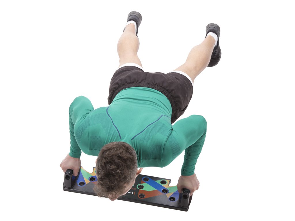 - pri umiestnení podpier do zelených otvorov budete počas klikovania precvičovať tricepsy