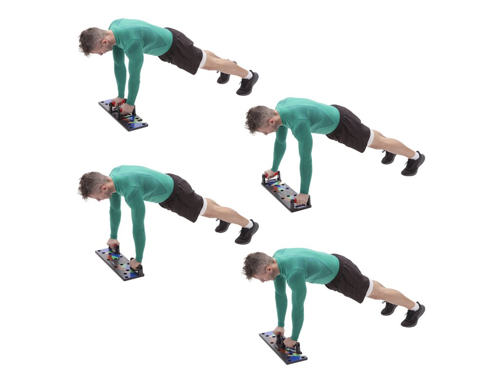 - pri umiestnení podpier do červených otvorov budete počas klikovania precvičovať ramená a prsné svaly