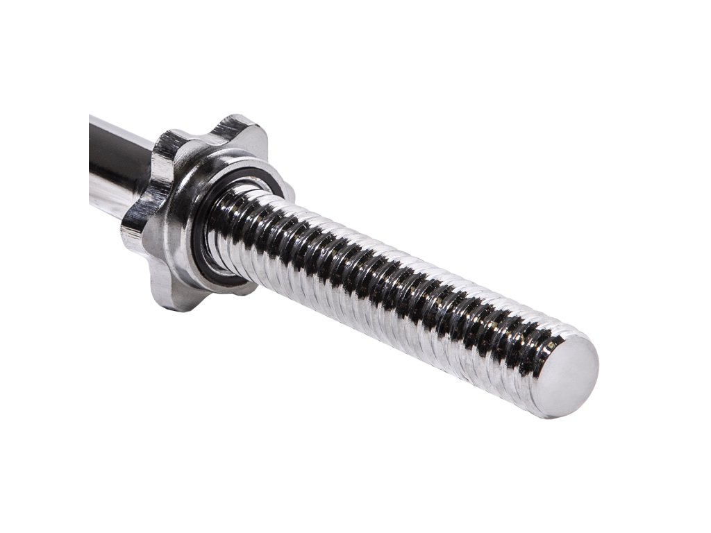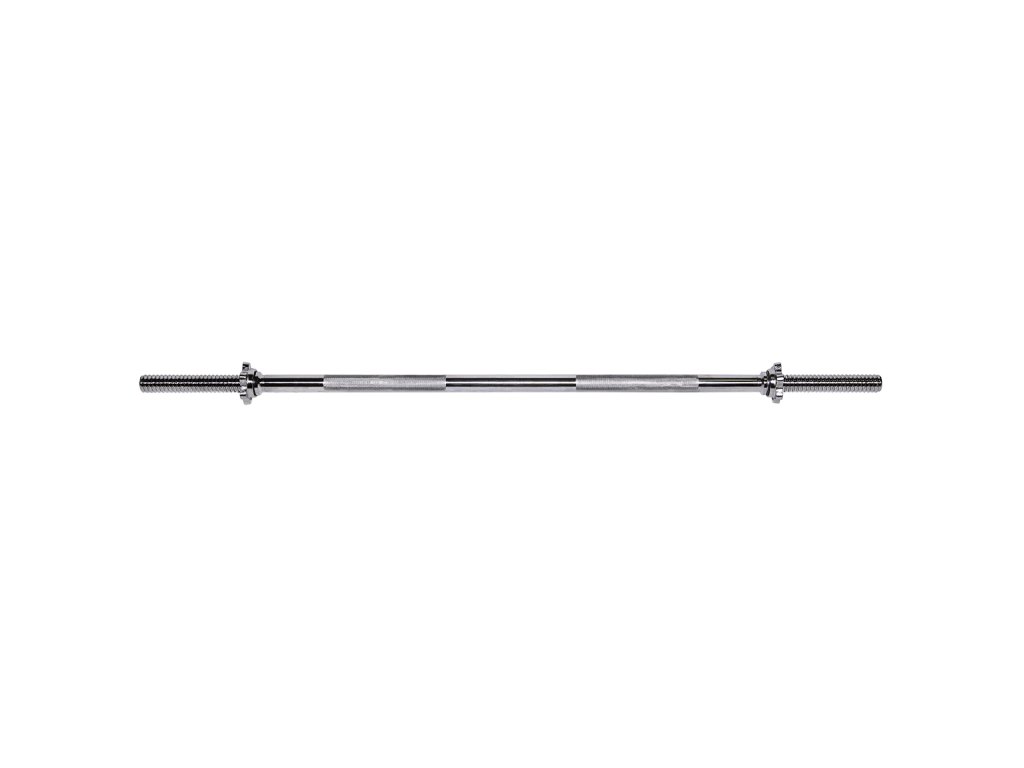 Rovná hriadeľ -120cm, matica v tvare hviezdy. Pre zaistenie pohodlného a bezpečného uchopenia, je rukoväť hriadeľa vrúbkovaná. Súprava obsahuje dve skrutkové matice. Matice tohto typu zaručujú pri cvičení stabilnú polohu. Matice majú vo vnútri gumové tesnenie, aby sa zabránilo uvoľneniu zaťaženia. Hriadeľ je vyrobený z pevnej ocele, ktorá bola podrobená temperovaniu. Priemer hrdla je 30mm