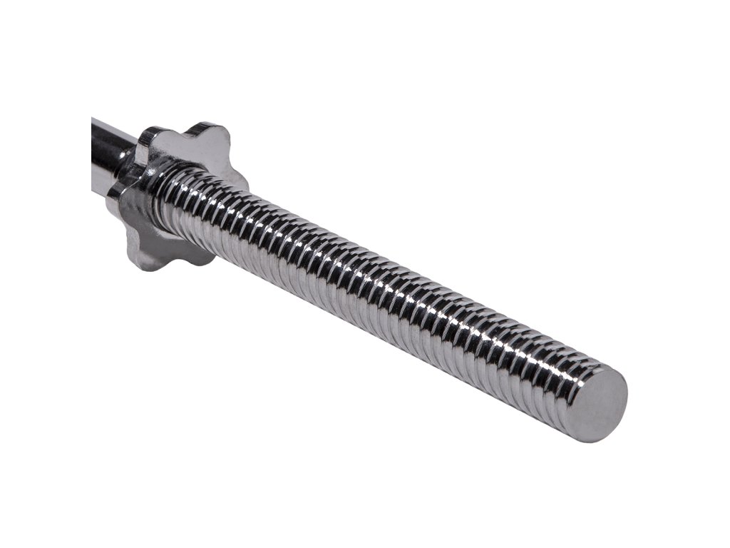 Obojručný hriadeľ -165cm, matica v tvare hviezdy. Pre zaistenie pohodlného a bezpečného uchopenia, je rukoväť hriadeľa vrúbkovaná. Súprava obsahuje dve skrutkové matice. Matice tohto typu zaručujú pri cvičení stabilnú polohu. Matice majú vo vnútri gumové tesnenie, aby sa zabránilo uvoľneniu zaťaženia. Hriadeľ je vyrobený z pevnej ocele, ktorá bola podrobená temperovaniu. Priemer hrdla je 30mm.