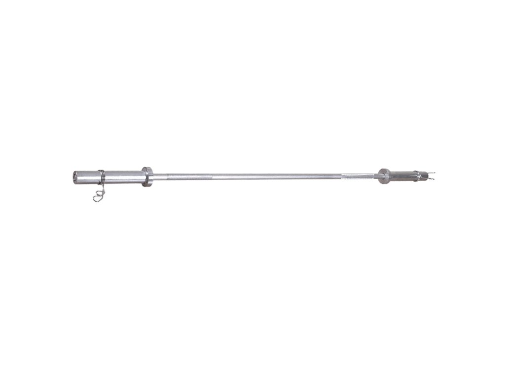 Rovný hriadeľ -120cm Pre zaistenie pohodlného a bezpečného uchopenia, je rukoväť hriadeľa vrúbkovaná. Súprava obsahuje dve pružinové svorky. Svorky tohto typu zaručujú pri cvičení stabilnú polohu. Hriadeľ je vyrobený z pevnej ocele, ktorá bola podrobená temperovaniu.