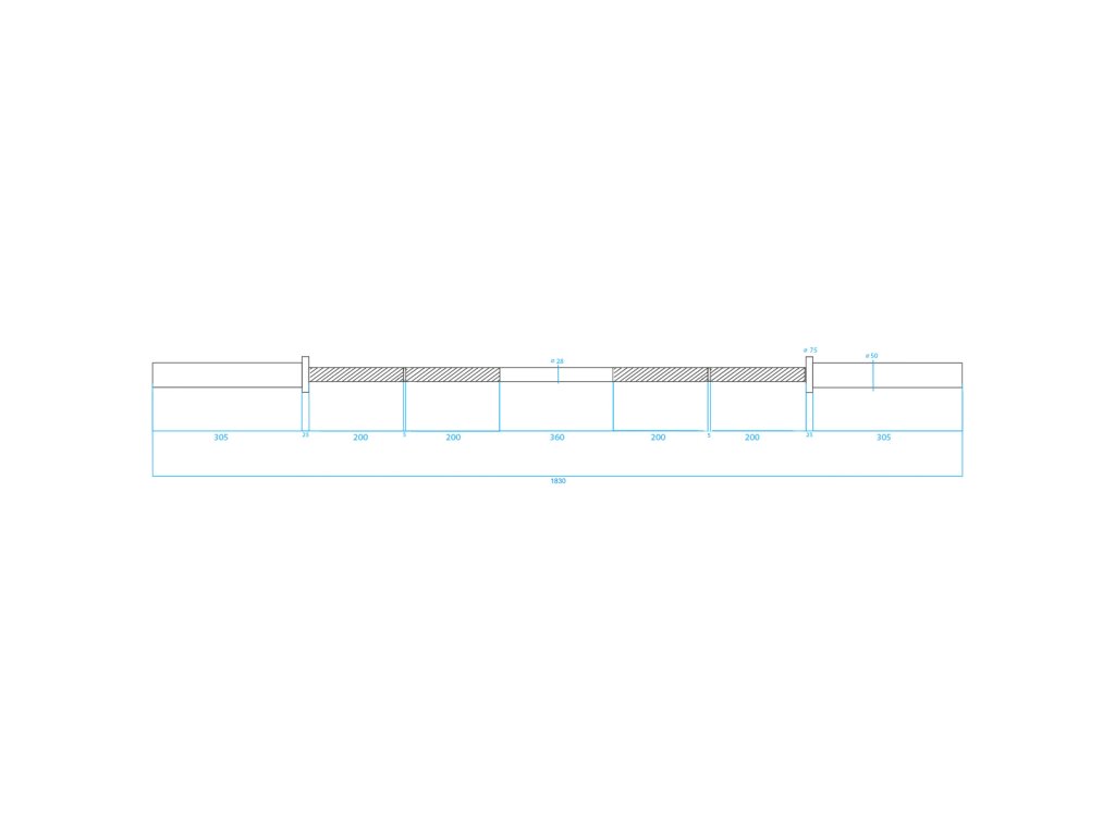 Olympijský hriadeľ GO320 HMS bol vyrobený zo špeciálnej chrómovanej ocele, ktorá prešla procesom kalenia. Produkt HMS sa vyznačuje pevnosťou v kombinácii s dokonalou pružnosťou. Súčasťou súpravy sú dva plastové uzávery ZG1000. Pevné a pohodlné uchopenie hriadeľa je zaistené vrúbkovaním na povrchu. Maximálne zaťaženie je 320 kg. Priemer úchopovej časti je 28 mm a zaisťuje vysokú odolnosť a pohodlie počas tréningu. Použitý proces chrómovania hriadeľa je zárukou zachovania jej vzhľadu po dlhú dobu jeho používania a tiež je najlepšou ochranou proti korózii. Olympijský hriadeľ GO320 HMS má 4 ihličkových ložísk (2 na každej strane), ktoré umožňujú hladké a plynulé otáčanie rukávov na hriadeli. Jej konštrukcia znižuje napätie na koncoch valčekov, čo má za následok vyššiu životnosť ložísk. Napriek svojmu malému prierezu majú ihličkové ložiská vysokú tuhosť a nosnosť. Dva plastové uzávery nachádzajúce sa v balení zaručujú stabilné rozloženie záťaže na hriadeli počas tréningu. Uzávery majú vo vnútornej časti gumové elementy brániace tomu, aby sa závažie povolilo.