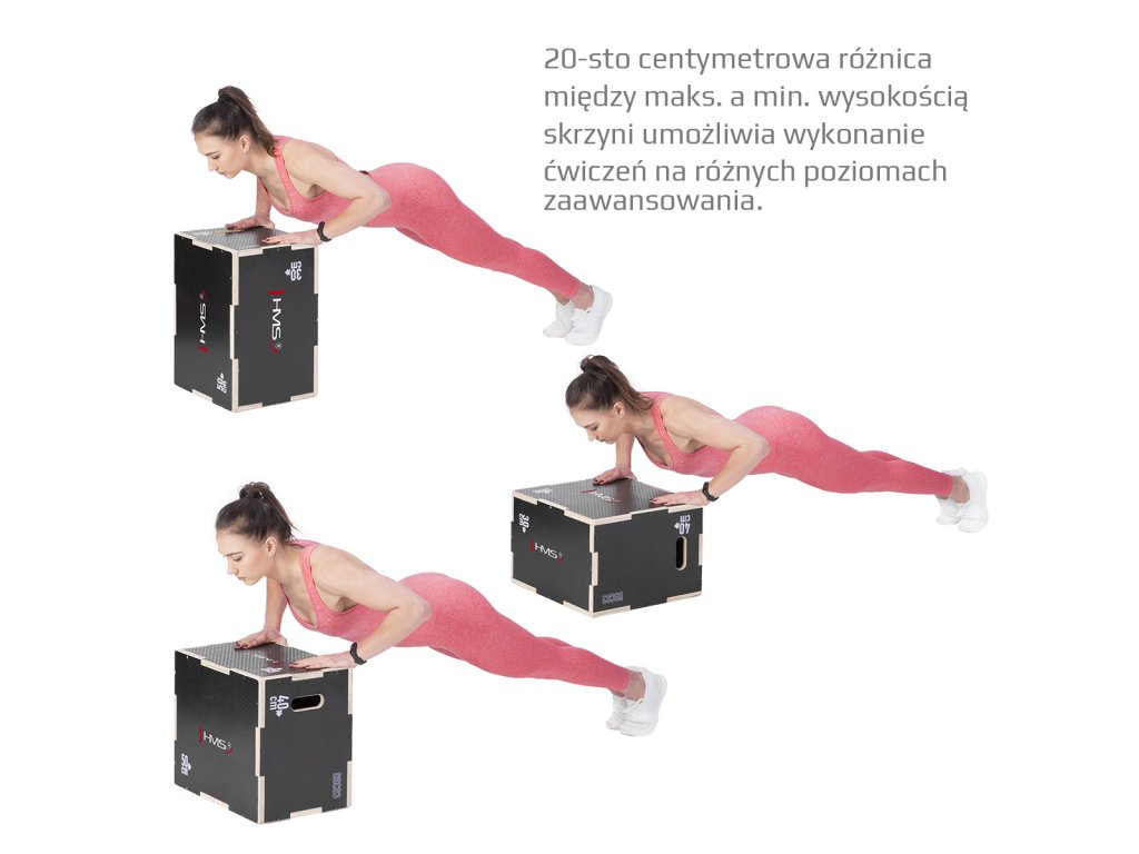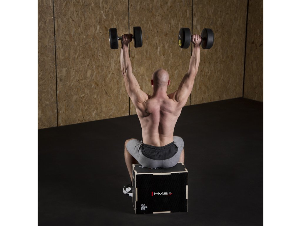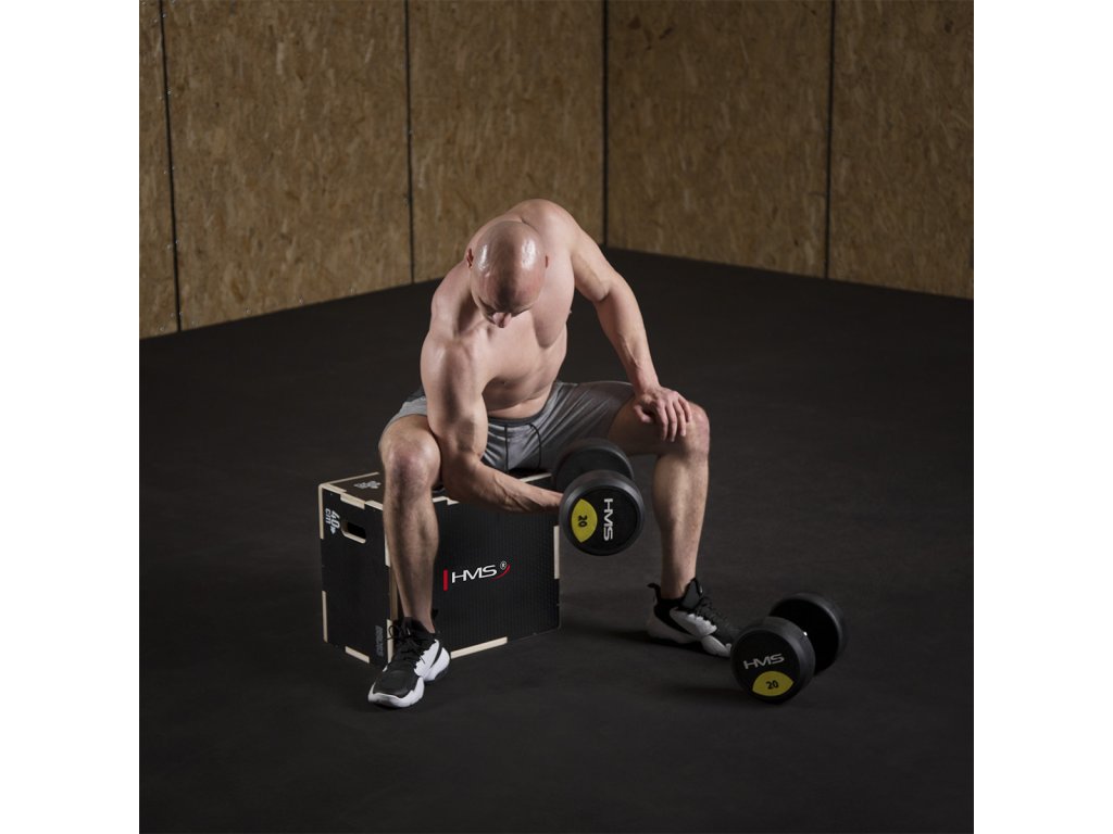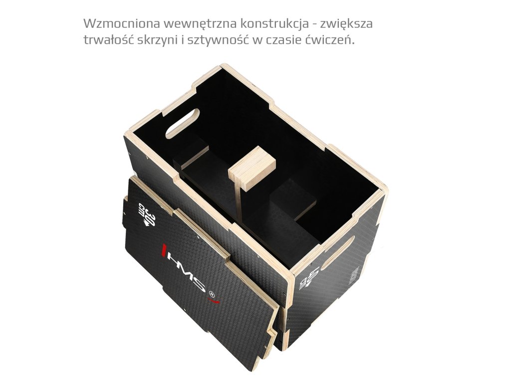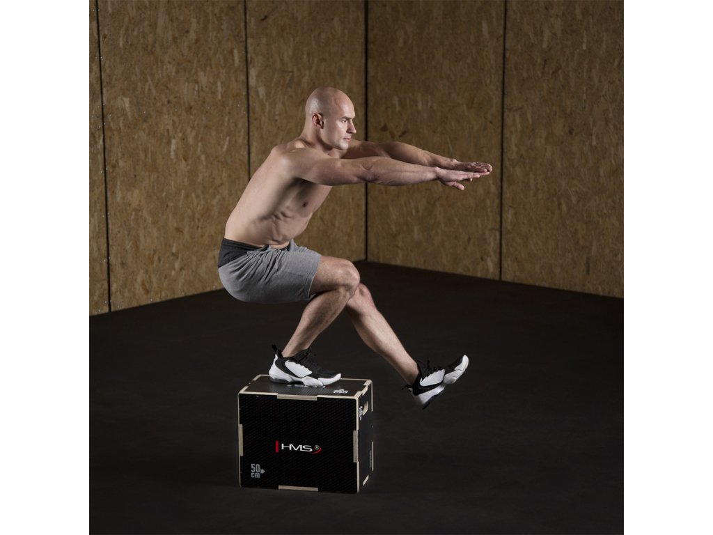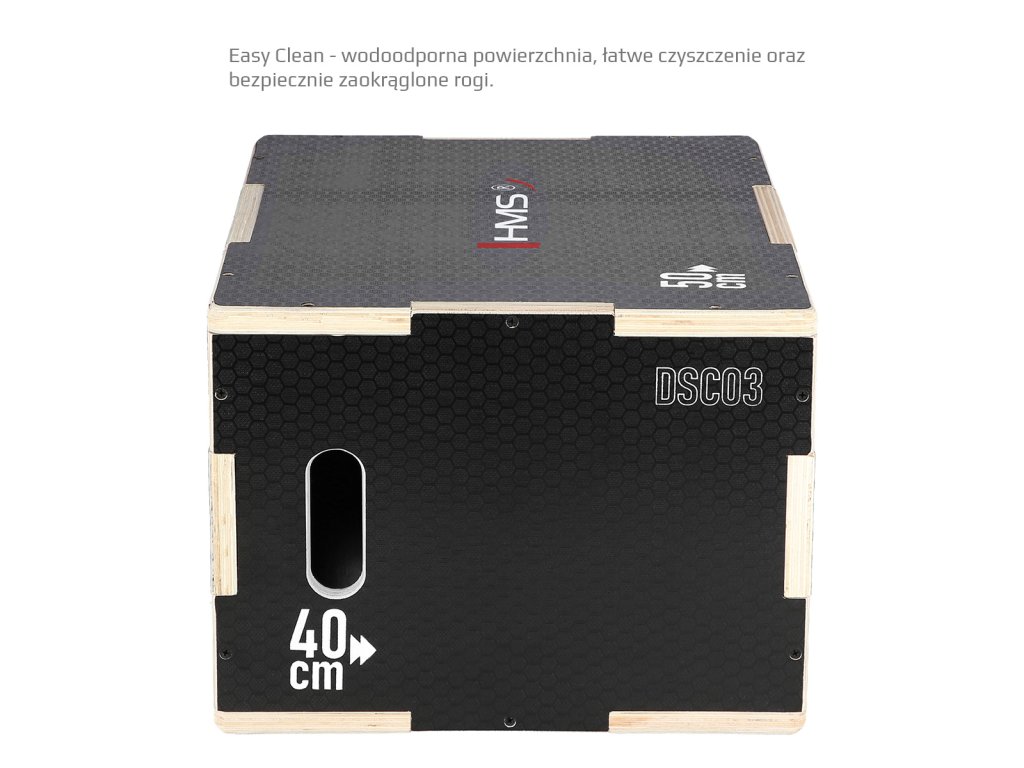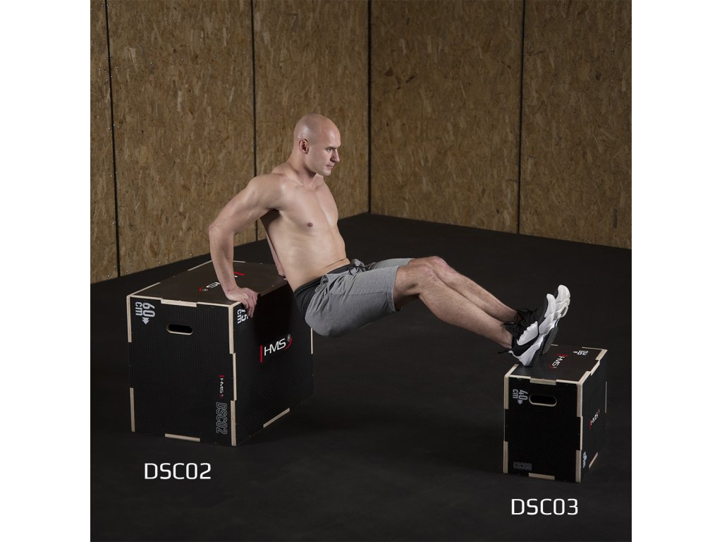 Plyometrický box HMS DSC03 je debna určená na kondičný tréning. Box je neoddeliteľnou súčasťou každého fitnesscentra, pomôckou profesionálnych športovcov alebo aj atlétov. Vyrobený je z 18 mm preglejky a má rozmery 50 x 40 x 30 cm.