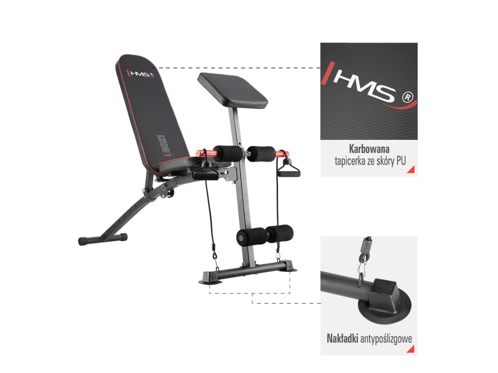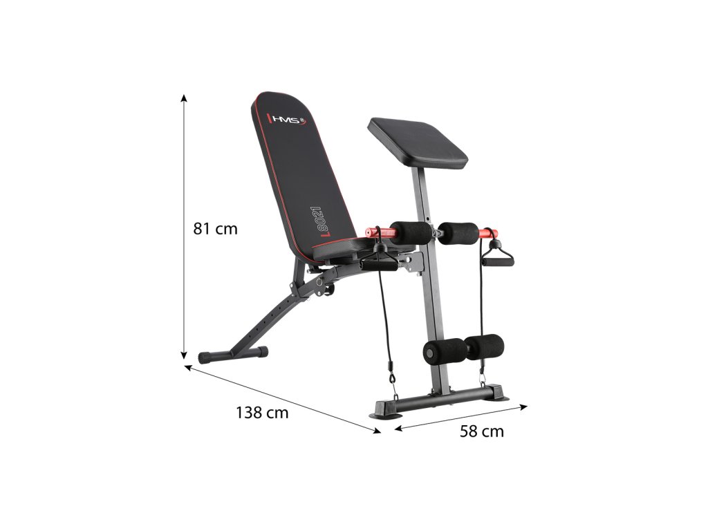 Posilovací lavice HMS L8021 je ideálním doplňkem každé domácí posilovny. Díky polohovatelné opěrce zad a výškově nastavitelnému modlitebníku je lavice L8021 ideální pro většinu cviků ať chcete posilovat bicepsy, tricepsy, hrudník, břicho, záda, ramena nebo nohy.