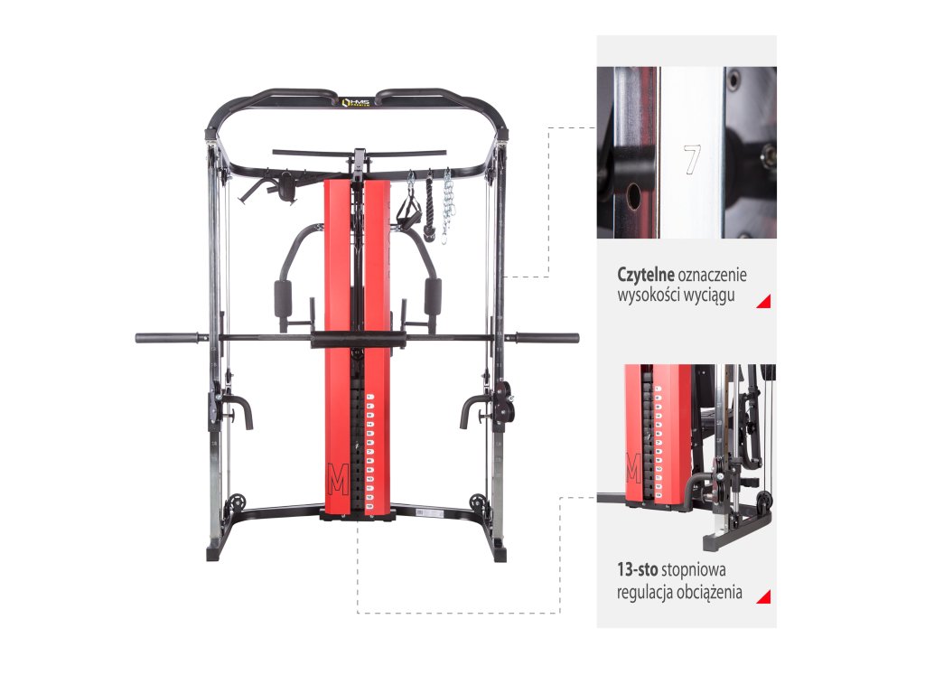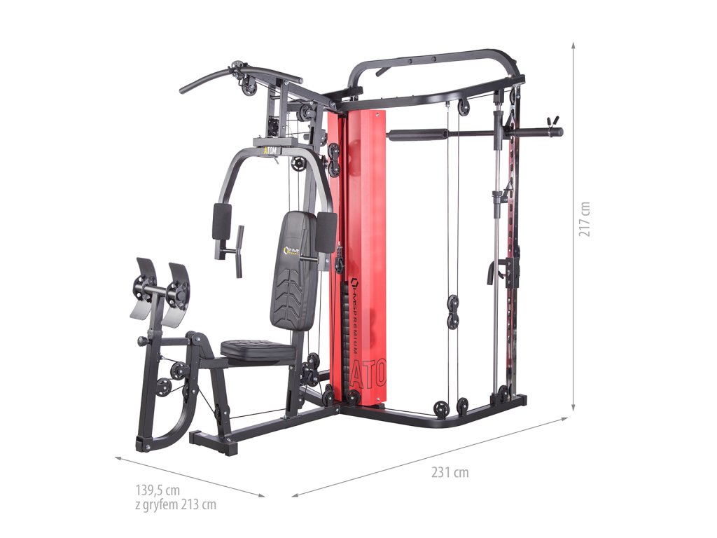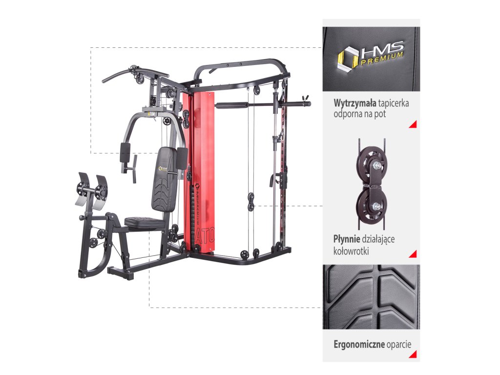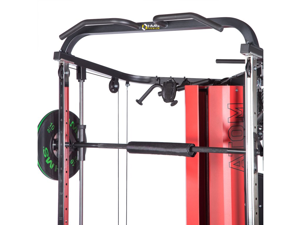 Stroj HMS Premium ATOM je kombináciou posilňovacej veže a multipressu. Táto kombinácia ponúka skvelé možnosti cvičenia a umožňuje vykonávať komplexný tréning celého tela.