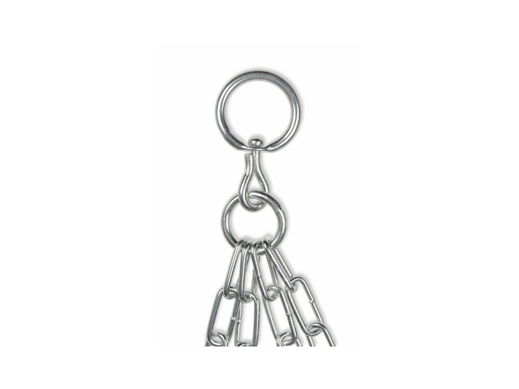 Řetězový závěs DBX BUSHIDO je určen pro zavěšení boxovacího pytle s maximální nosností 80 kilogramů. Jednotlivé řetízky jsou vyhotoveny z ocelového, pozinkovaného řetězu se svařovanými oky a jsou zakončeny šroubovací karabinou pro snadnou instalaci. Nahoře jsou řetízky spojeny pomocí svařovaného kroužku, který je spojen s otočným okem. Celková délka závěsu je 48 centimetrů.