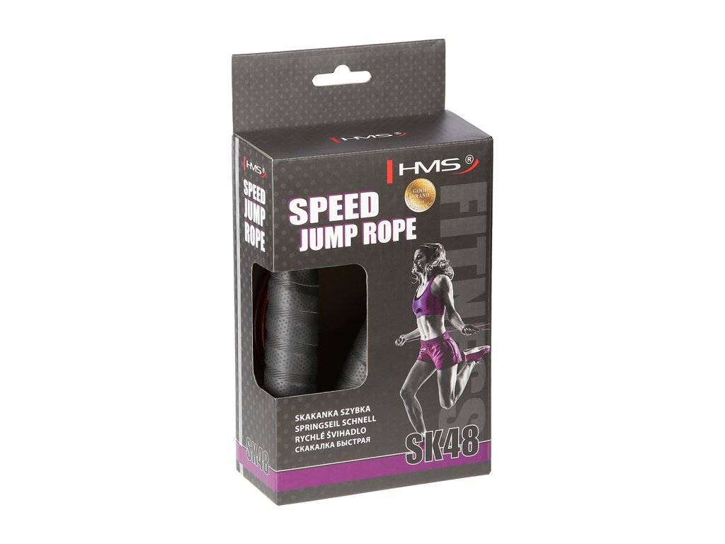 Švihadlo HMS SK48 je vybavené oceľovým lankom, ktoré je možné vďaka skrutkám nastaviť na ľubovoľnú dĺžku. Rotačné hlavice osadené ložiskami predchádzajú zamotaniu lanka. Plastové rukoväte sú opatrené omotávkou pre pohodlný úchop.