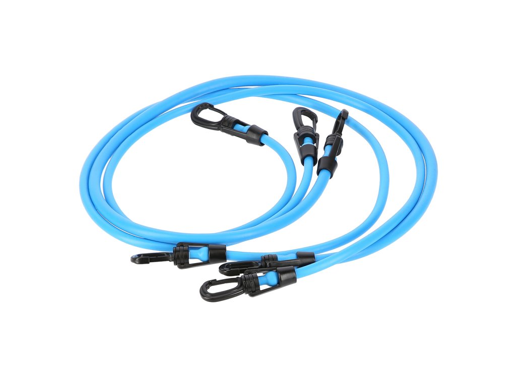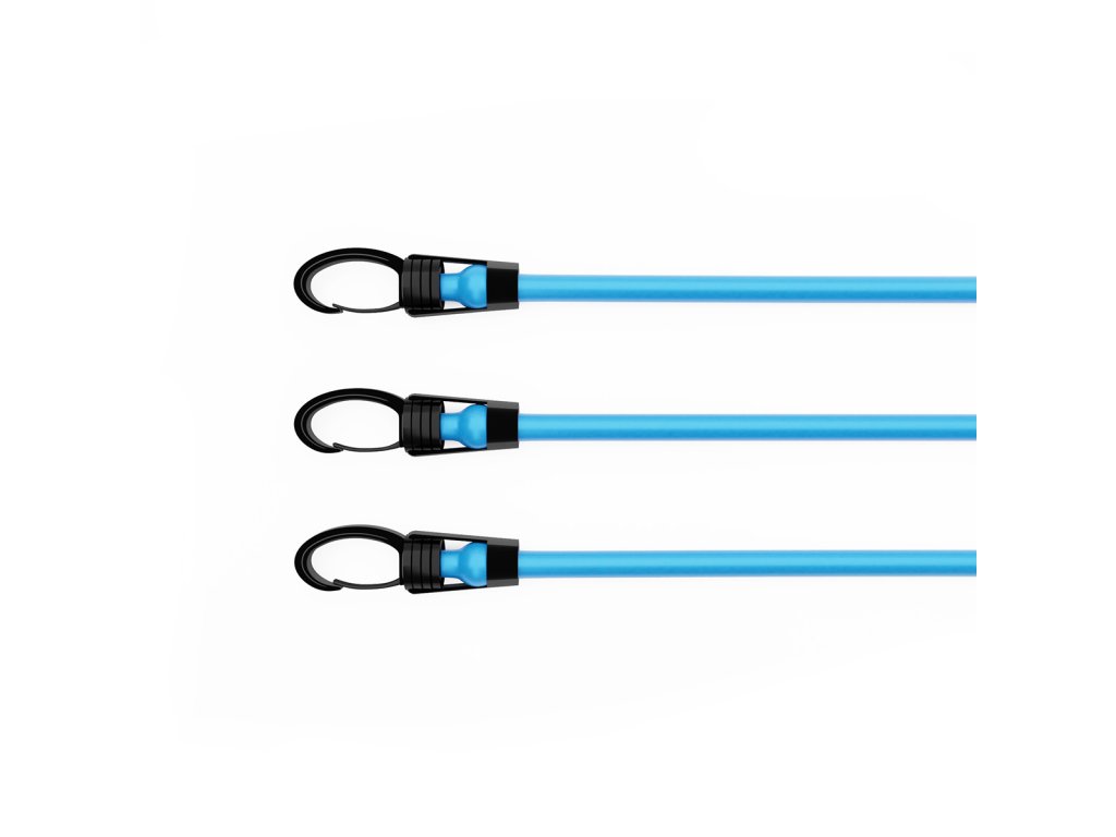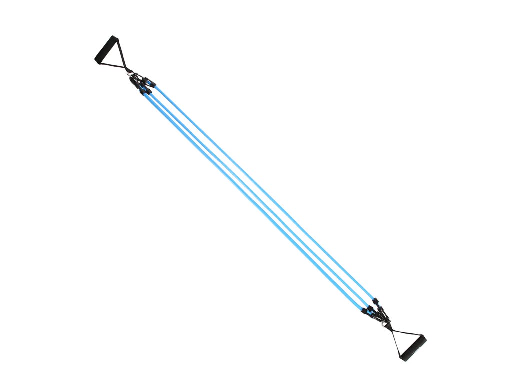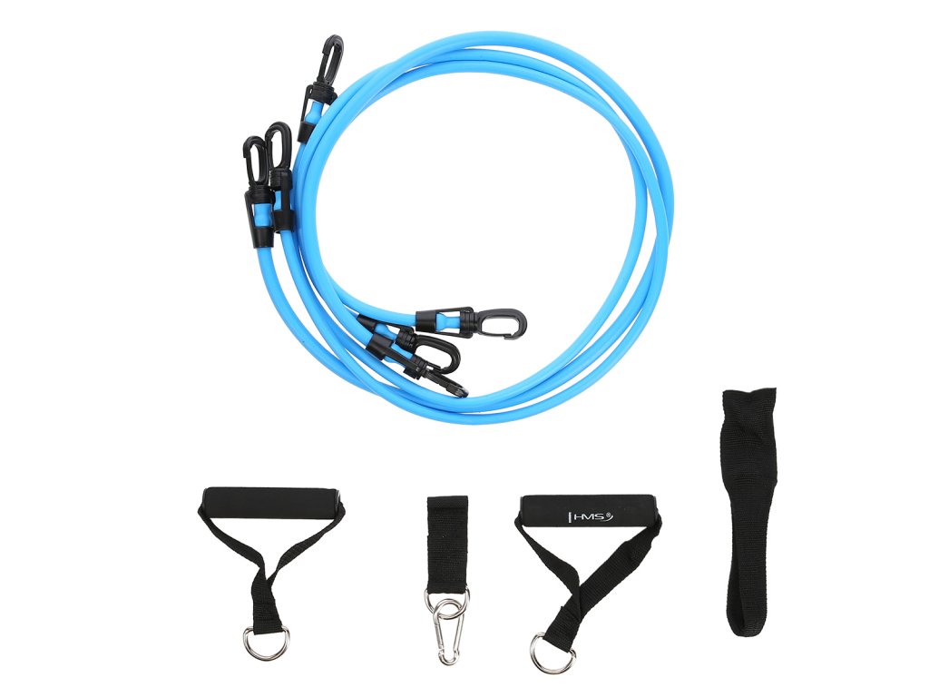 TX01 Sada sa skladá z 3 - odporovej gumy, 2 - rukoväte 1 - Upevnenie ku členku, 1 - upevnenie na dvere. Každá dvojica drôtov má inú tuhosť, ktorá vám umožní vybrať rôzne úrovne intenzity cvičenia. Na každej z gúm môže byť rukoväť, čo umožňuje realizáciu komplexného tréningu všetkých svalových skupín.