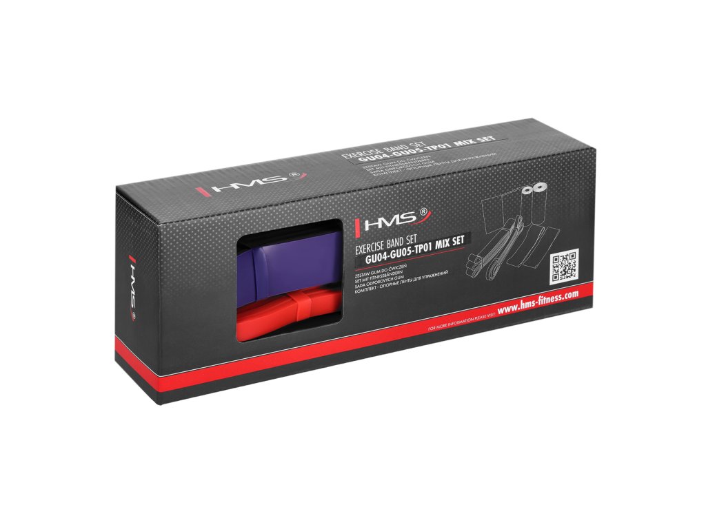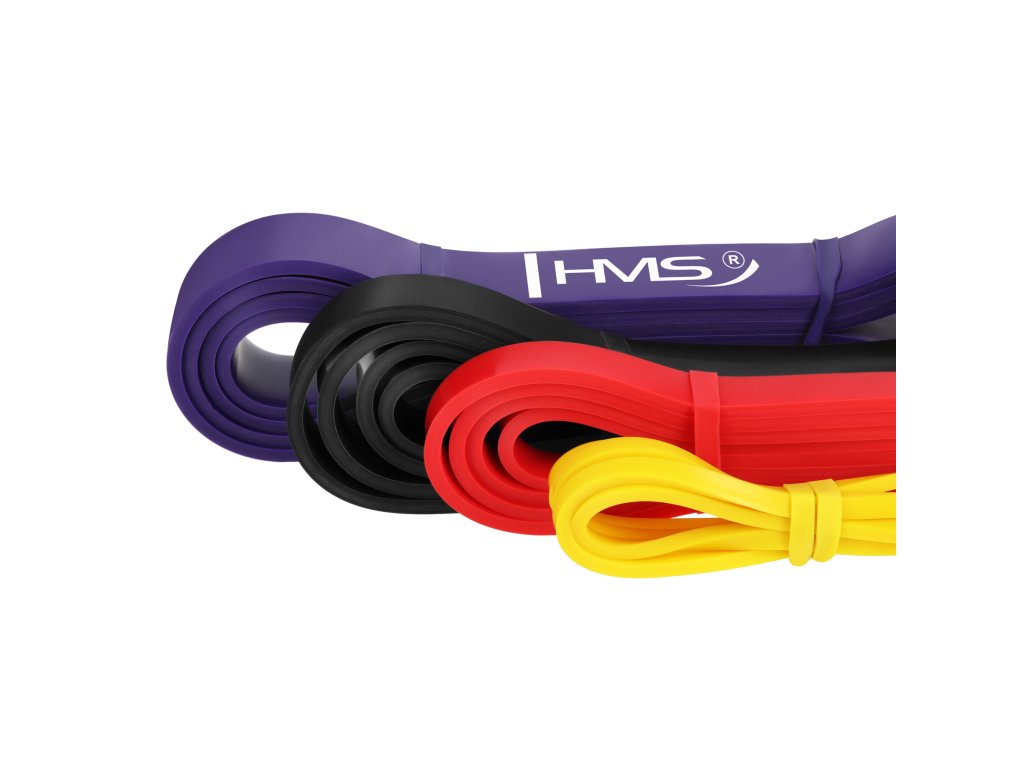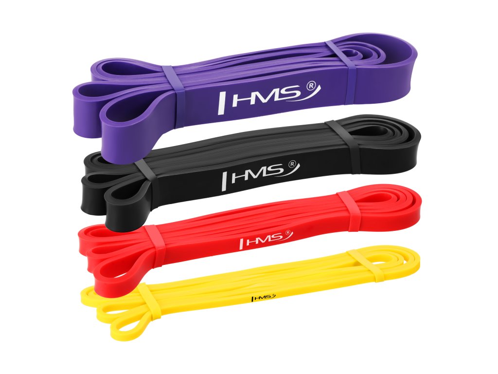 Set 4 posilňovacích gúm HMS ktoré sú využívané v silovom tréningu, kondičnom tréningu, ale aj v rehabilitačnom cvičení. V silovom tréningu slúži ako dopomoc alebo ako dynamická záťaž. Pri rehabilitácii sú využité pretože sa nejedná o priamu záťaž, ale guma postupným ťahom vytvára odpor a to predovšetkým pri úrazoch svalov, šliach a kĺbov.