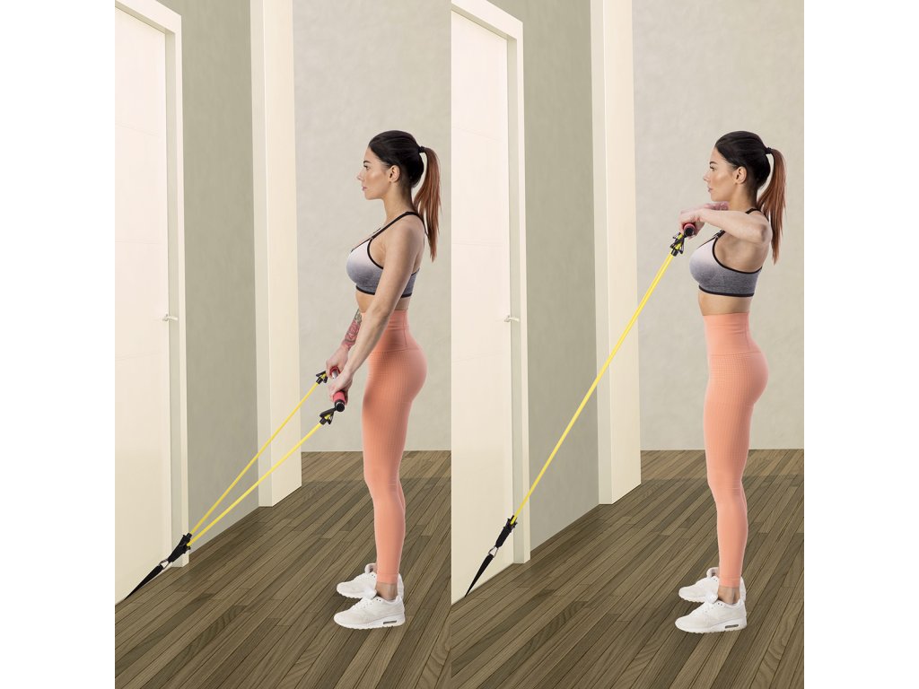 Ako príklad uvadíme cvik, kedy sa na tyč postavíte a expadnérov priťahujete smerom k telu. Prípadne si rukoväte expandérov nasadíme na chodidal a priťahujeme tyč.