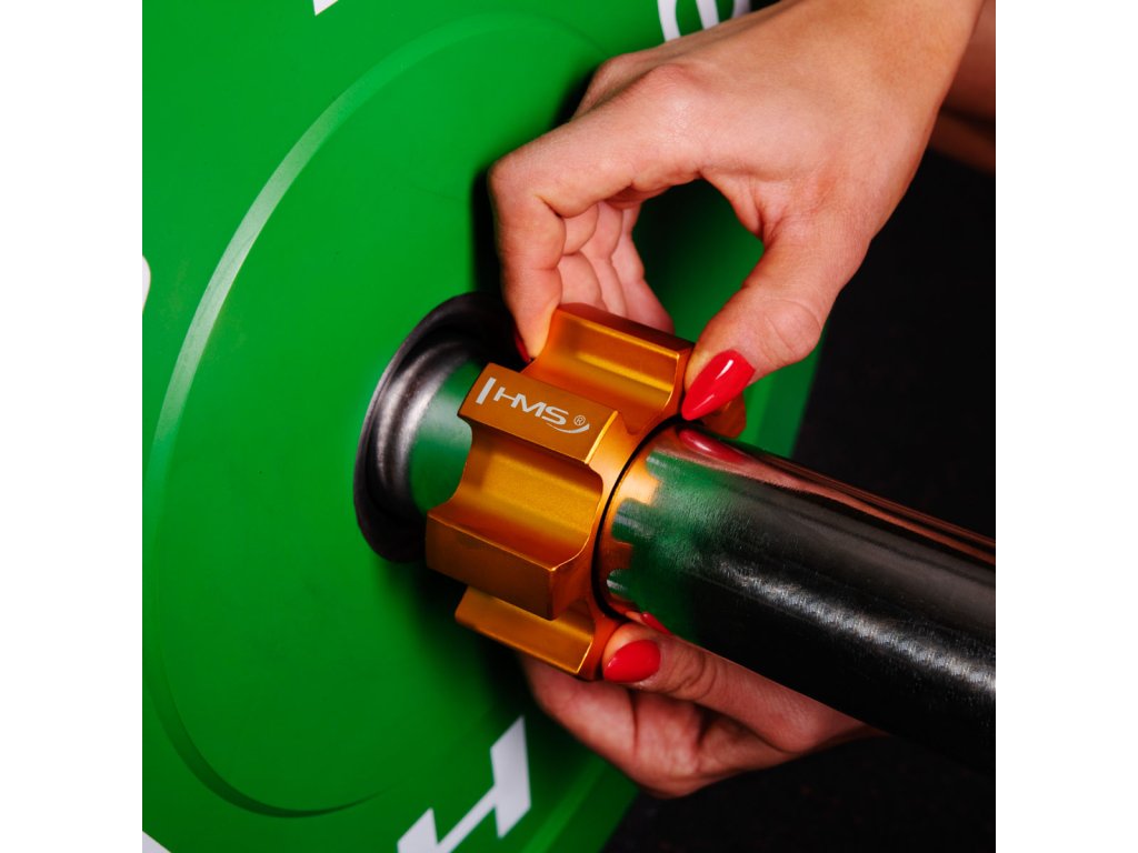 Uzávěr na olympijskou osu HMS ZG1500 je tedy konstruován pro osy s průměrem 50 mm. Uzávěr se vyznačuje jedinečným systémem uzavírání, který zabraňuje jakémukoliv posunutí uzávěru během cvičení. Celý tento proces pomáhá lehké manipulaci a žádnému opotřebení osy.